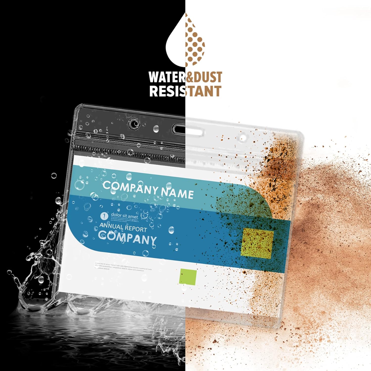 4x3 Inch Horizontal Badge Holder, Clear Plastic ID Card Protector with Waterproof Resealable Zip Type, Badge Sleeve Fits Name Tag Holder/RFID/Proximity/Credit Card (100PCS)