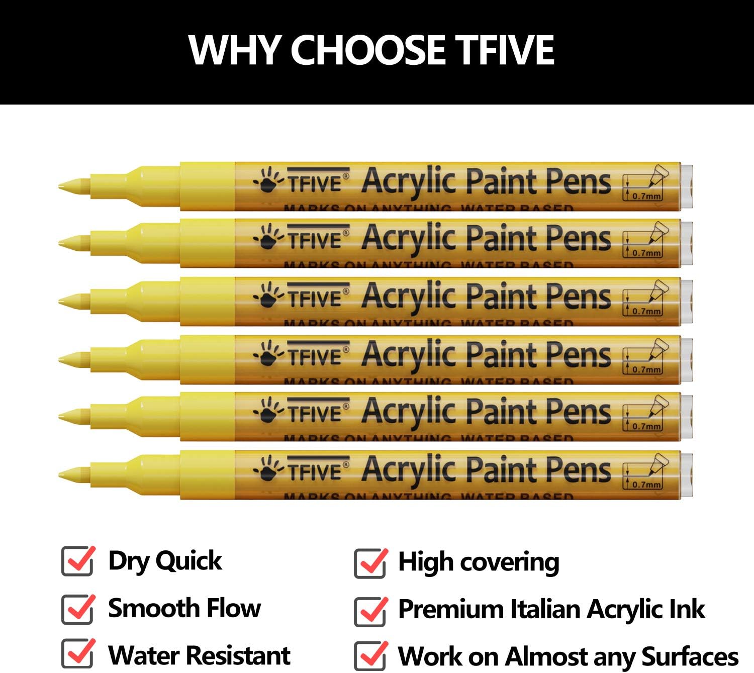 Yellow Marker Paint Pens - 6 Pack Acrylic Yellow Permanent Marker, 0.7mm Extra Fine Tip Paint Pen for Art Projects, Drawing, Rock Painting, Ceramic, Glass, Wood, Plastic, Metal, Canvas DIY Crafts
