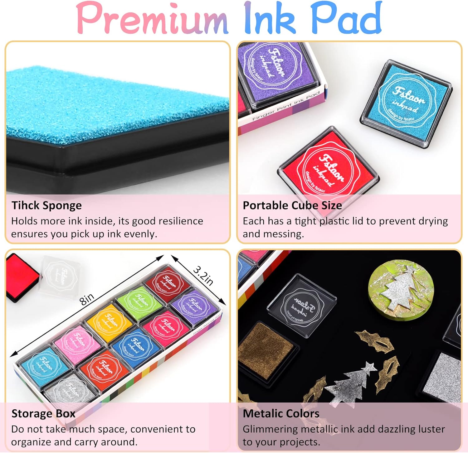 Fstaor 20 Colors Washable Ink Pads for Kids Rubber Stamps, Finger Print Crafts Stamp Pad for Kids, Paper, Scrapbooking, Fabric,Wood (Pack of 20)