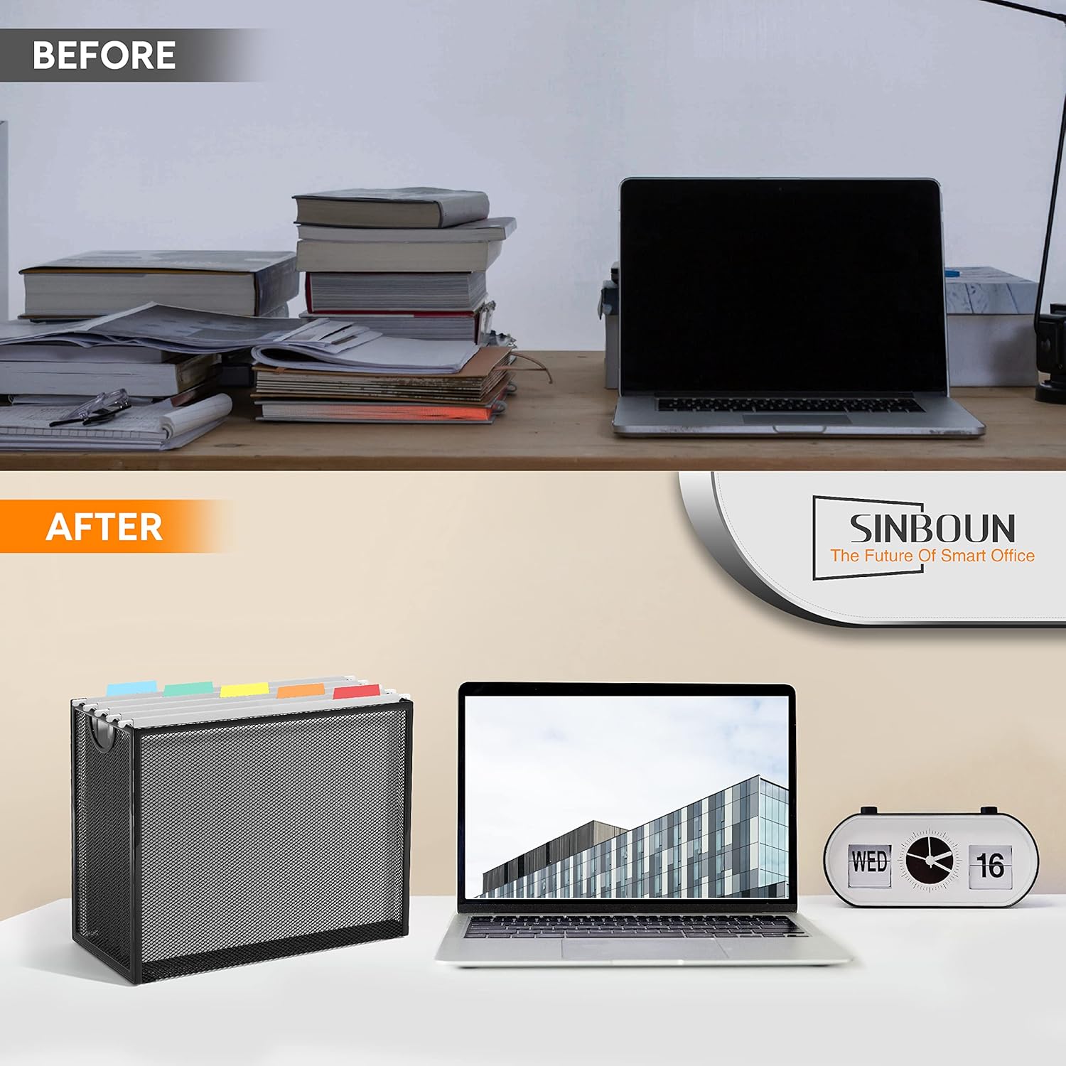 Sinboun Hanging File Organizer Letter-Size File Holder Filing Box Includes 5 Hanging Folders - Metal Mesh Magazine Letter Storage Cabinets File Cart for Office Home School, No Assembly Required