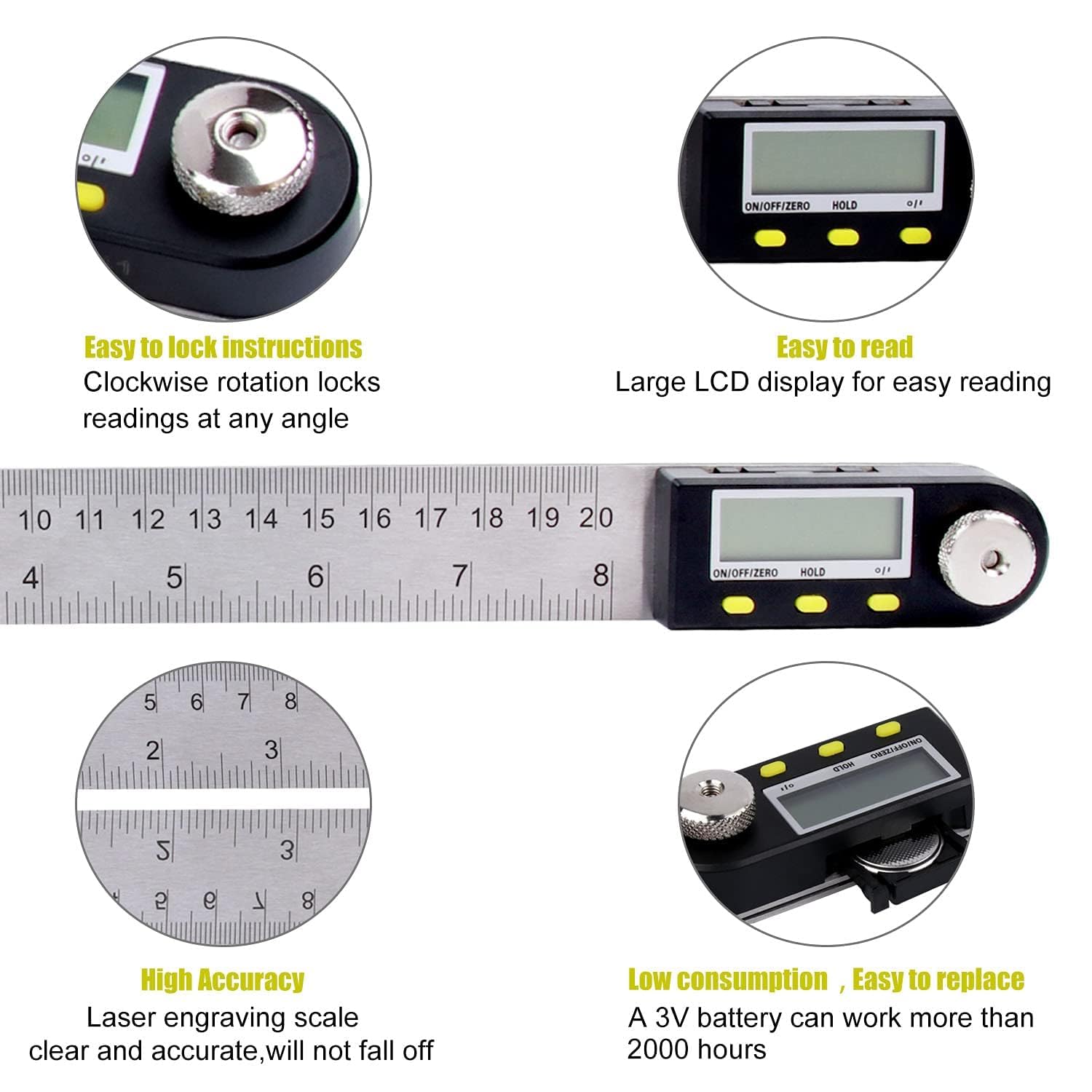 - Digital Display: Exquisite LCD Display - Precise Angle and Length Measurement in One Tool