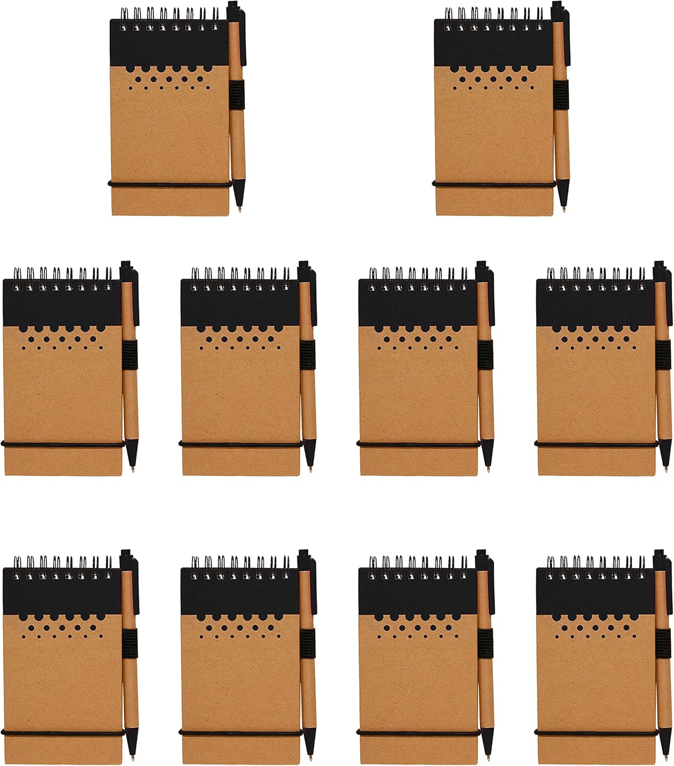 DISCOUNT PROMOS 10 Recyclable Spiral Small Notebooks Pack - 60 Lined Pages - Black