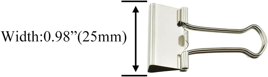 HAHIYO Binder Clips Paper Clamps Spring Steel Sturdy 0.98 inches Width 0.31 Inch Capacity No Sharp Edges Heavy Duty Tight Grip Reusable Silver Metal Bright Finish for Home Office School 25 Pack