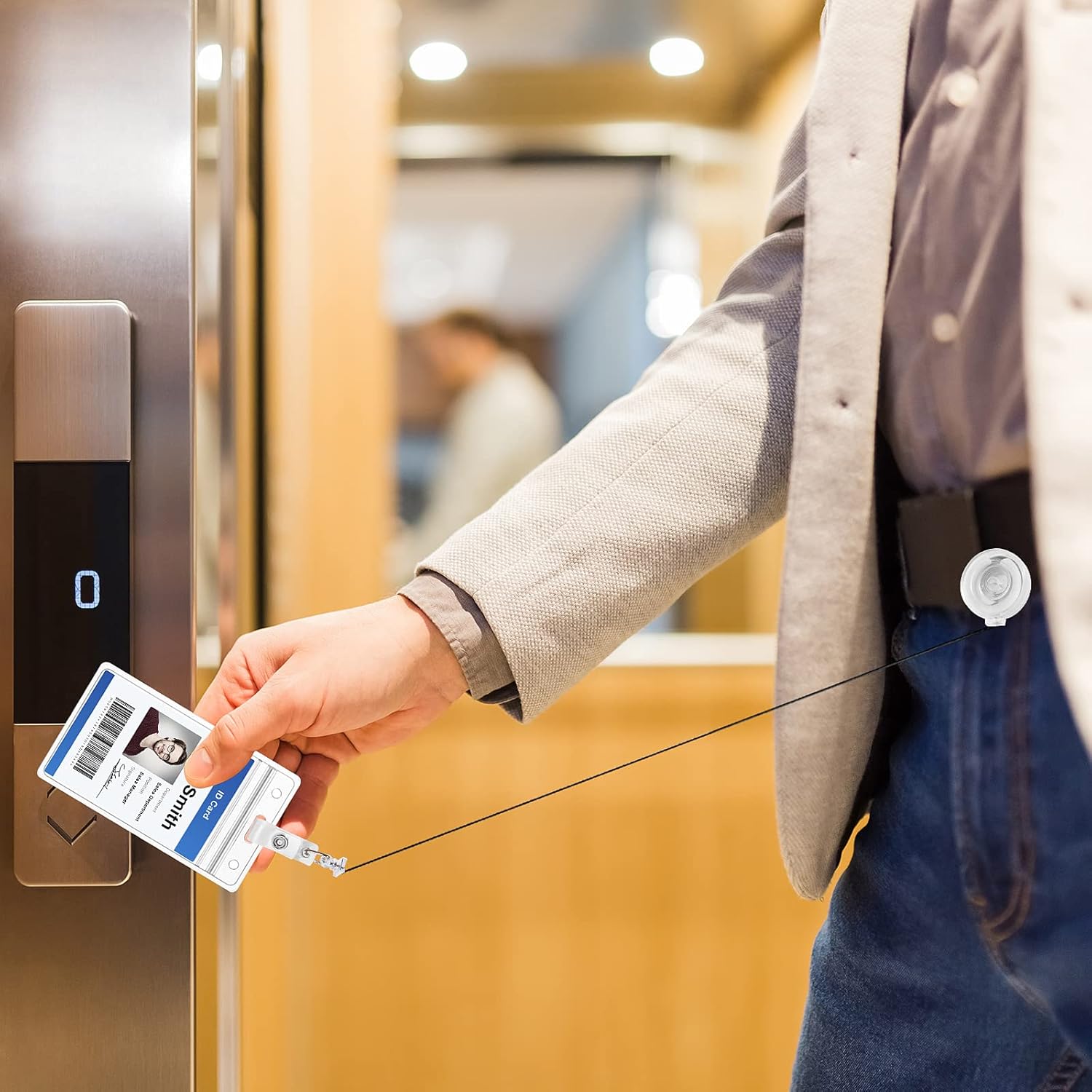 - 【TOP QUALITY BADGE REEL】: Our retractable badge clip is made of high-quality ABS shell and high-strength nylon fish thread of badge clip with 30-inch extension makes retractable badge reel easier to use your ID card. The spring at the joint of id retractable badge holder can reduce the tension and effectively prevents the cord from breaking. All above advantages make it durable