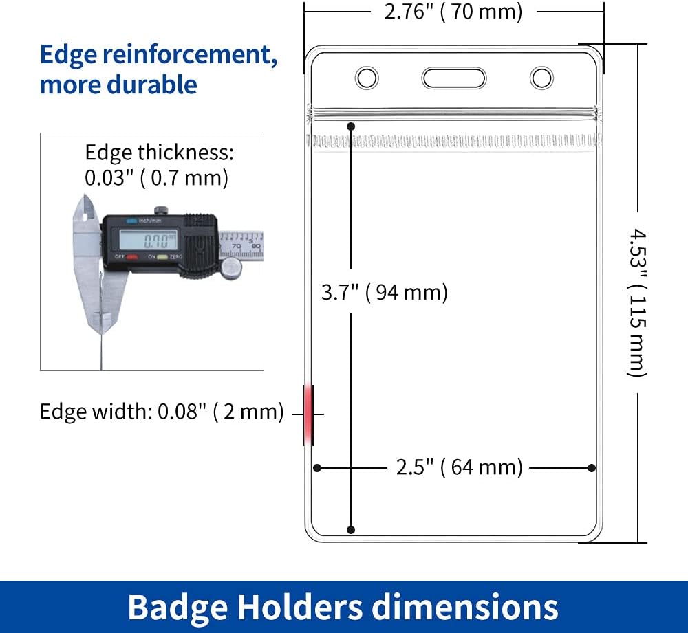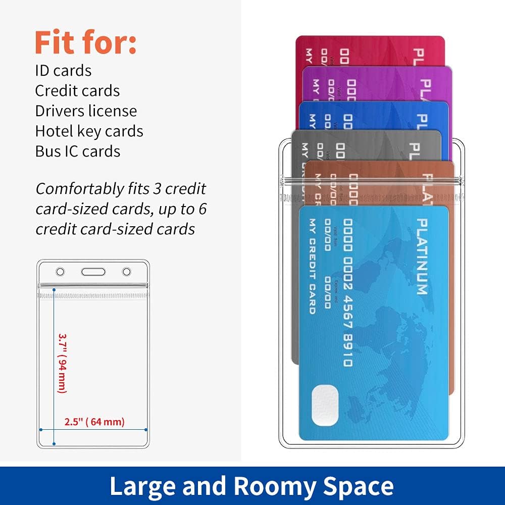 - 【Large & Roomy Space】ID badge holders external dimensions: 4.53" L x 2.76" W , available internal size: 3.7" L x 2.5" W. Can hold about 6pcs credit card size cards.