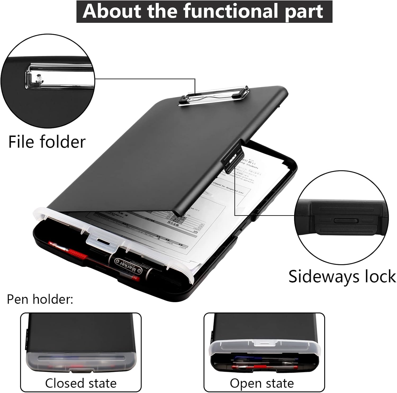 - High Capacity: Clipboard design with storage space, can securely hold up more than 200 letter-sized documents, it has twice the capacity of other clipboards. Have a pen holder at the bottom of the clipboard case, can holds up to 6 pencils