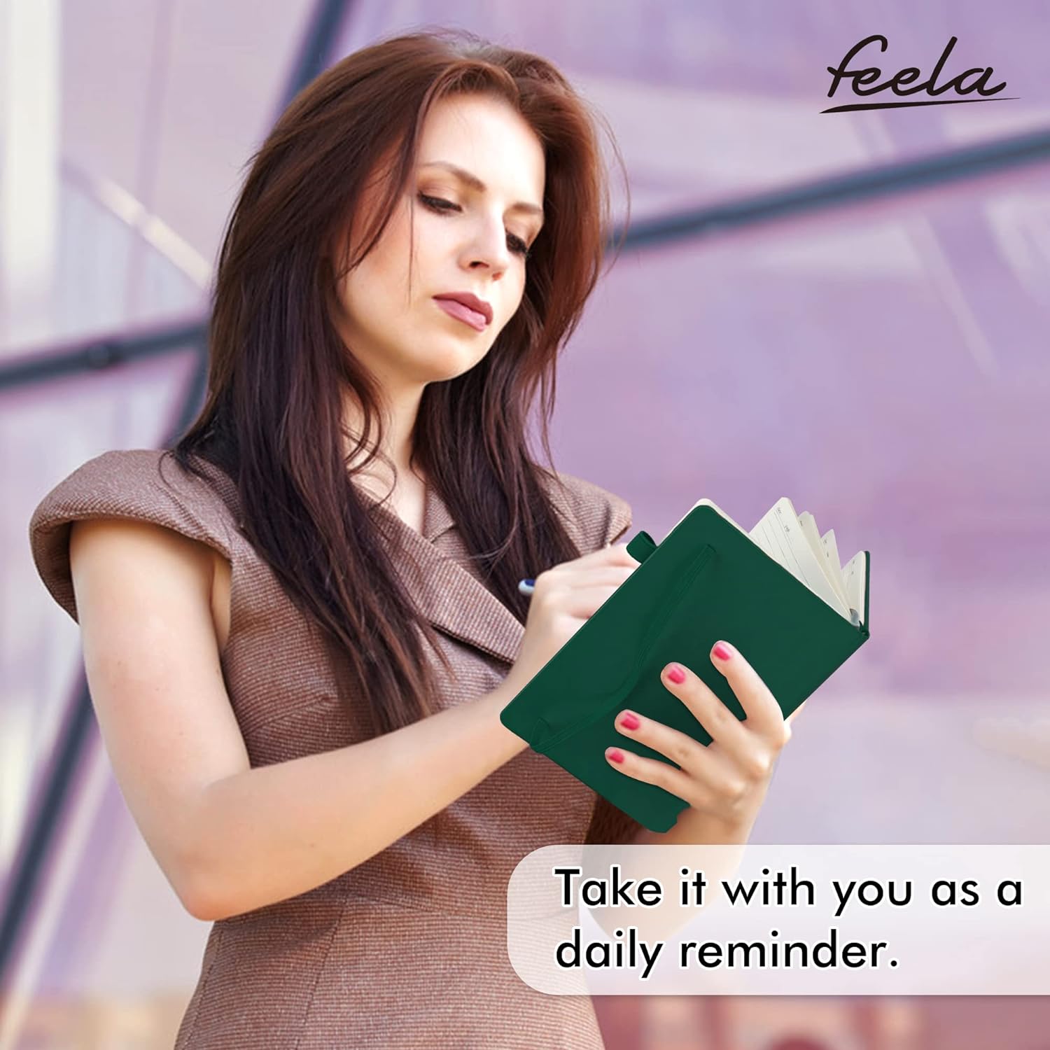 feela 24 Pack Journal Notebook for Work, Business Notebook Bulk Hardcover Lined Writing Journal with Pen Holder for Men Women Note Taking, with 24 Black Pens, 120 GSM, 5.1”x8.3”, A5, Dark Green