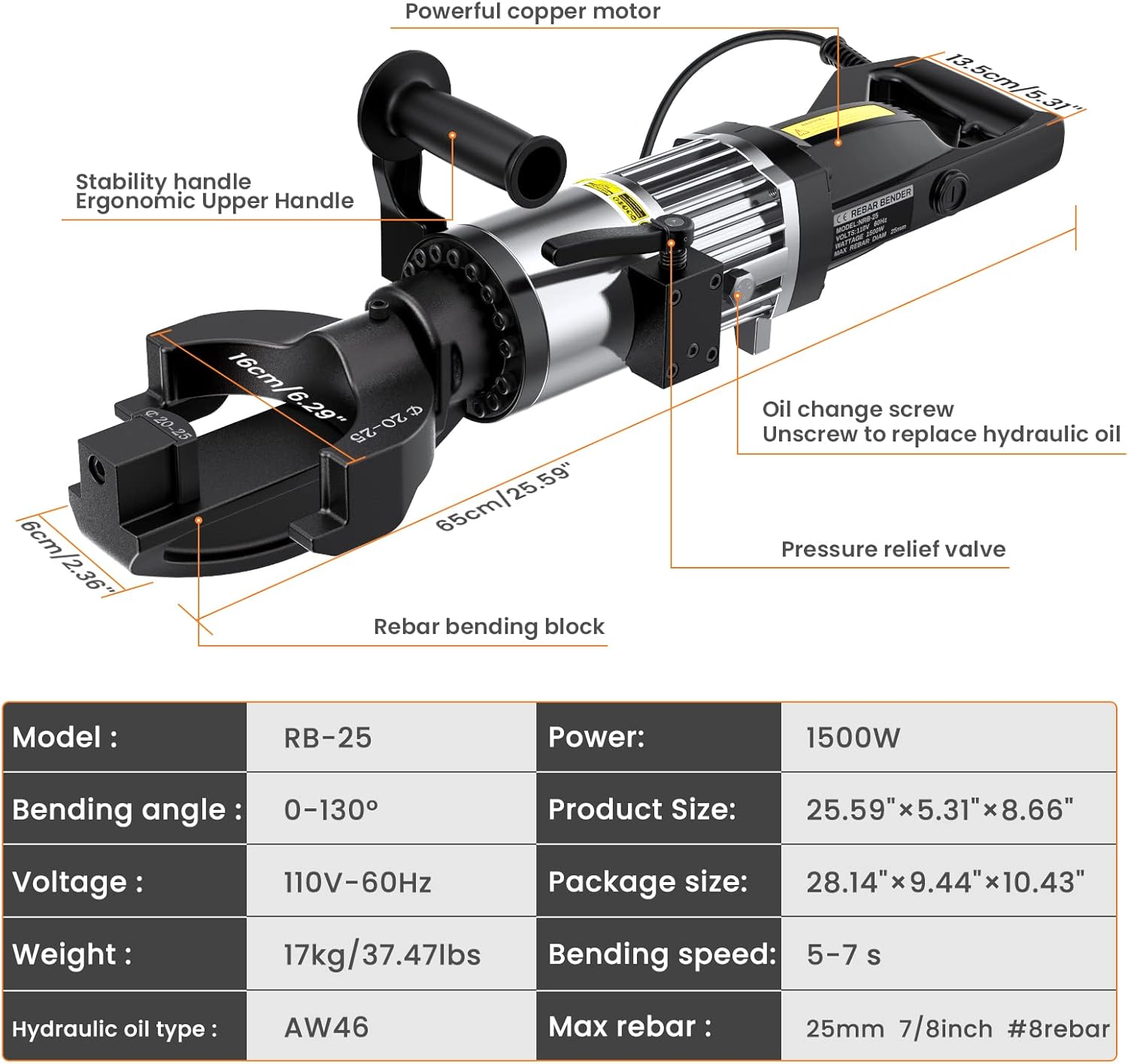 - 【Powerful 1500W Pure Copper Motor】With the electric hydraulic-powered motor and piston, Anbull rebar bender makes each bend both fast and efficient, and it also features strong thrust with less power consumption and lower noise.