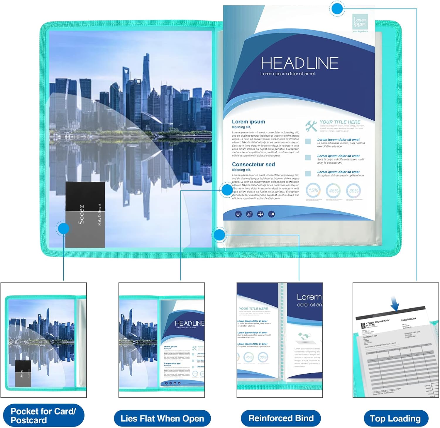 Sooez 30-Pocket Binder with Plastic Sleeves 8.5x11 (Aqua), Heavy Duty Art Portfolio Folder with Clear Sheet Protectors, Display 60 Pages, Presentation Book for Artwork, Document Organizer Binder