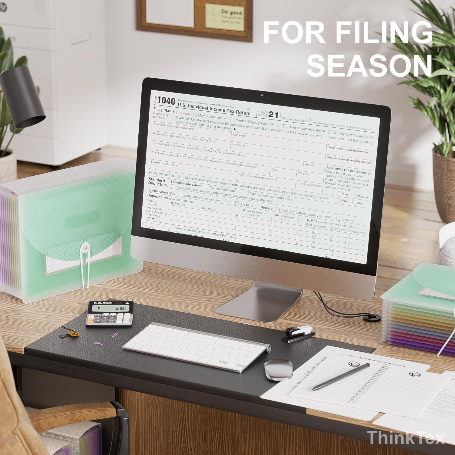 - MONTHLY BILLS ORGANIZER - ThinkTex Portable accordion file organizer, top and bottom both expandable, 12 pockets and multi-colored tabs, for letter/A4 size