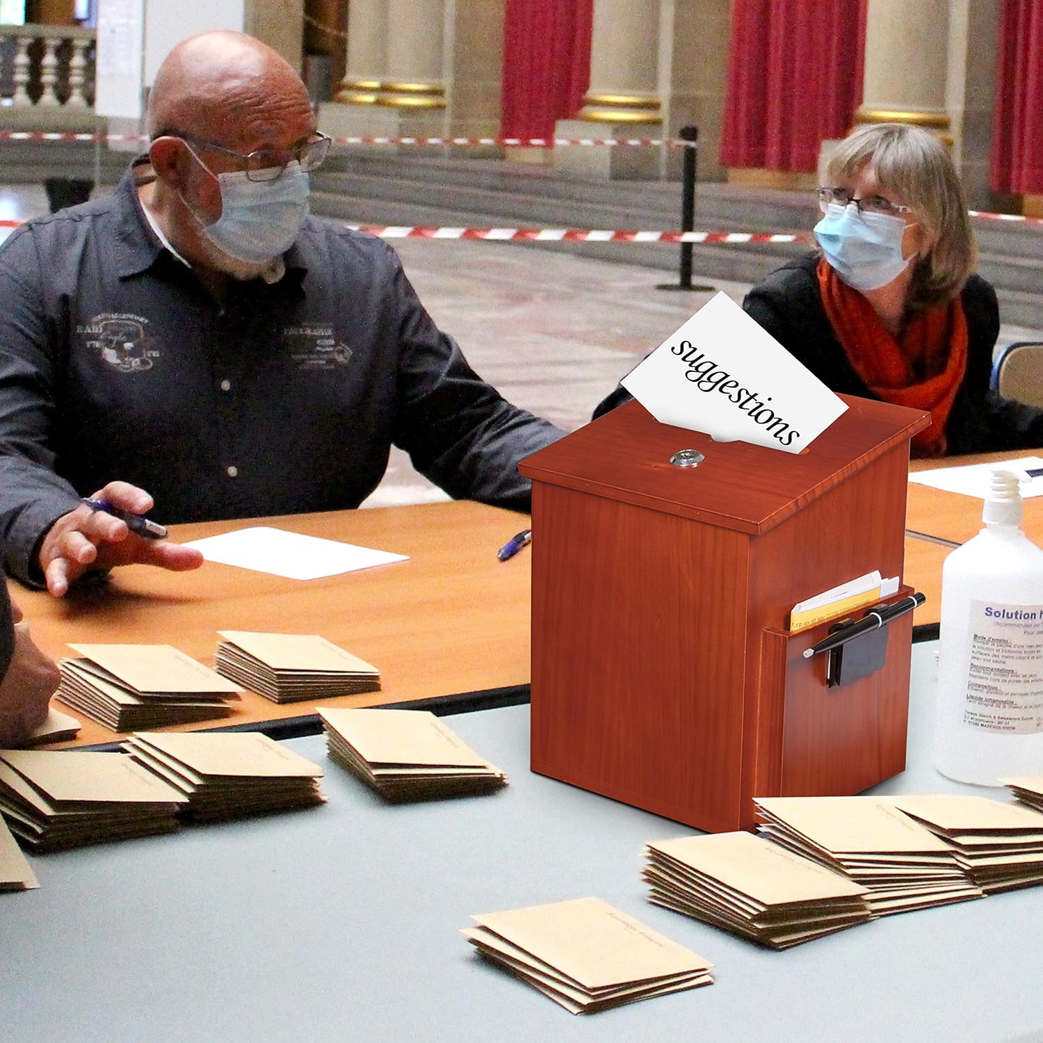 - Wood Suggestion Box ~ Ballot Box with Pocket ~ Locking Hinged Lid and Pen ~ for Counter-top or office use