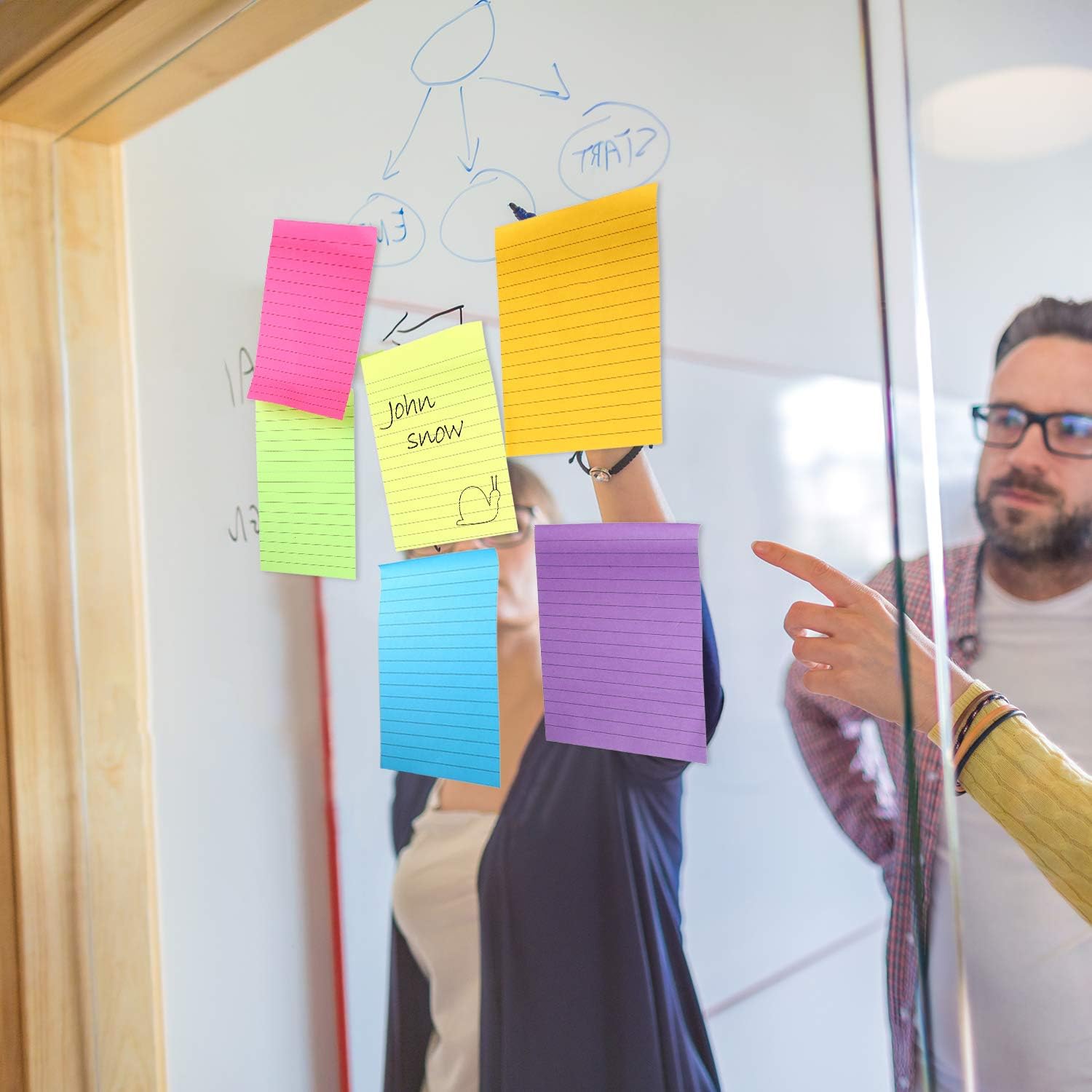 (12 Pack) Lined Sticky Notes 4x6 in Ruled Stickies Super Sticking Power Memo Pads Bright Colors
