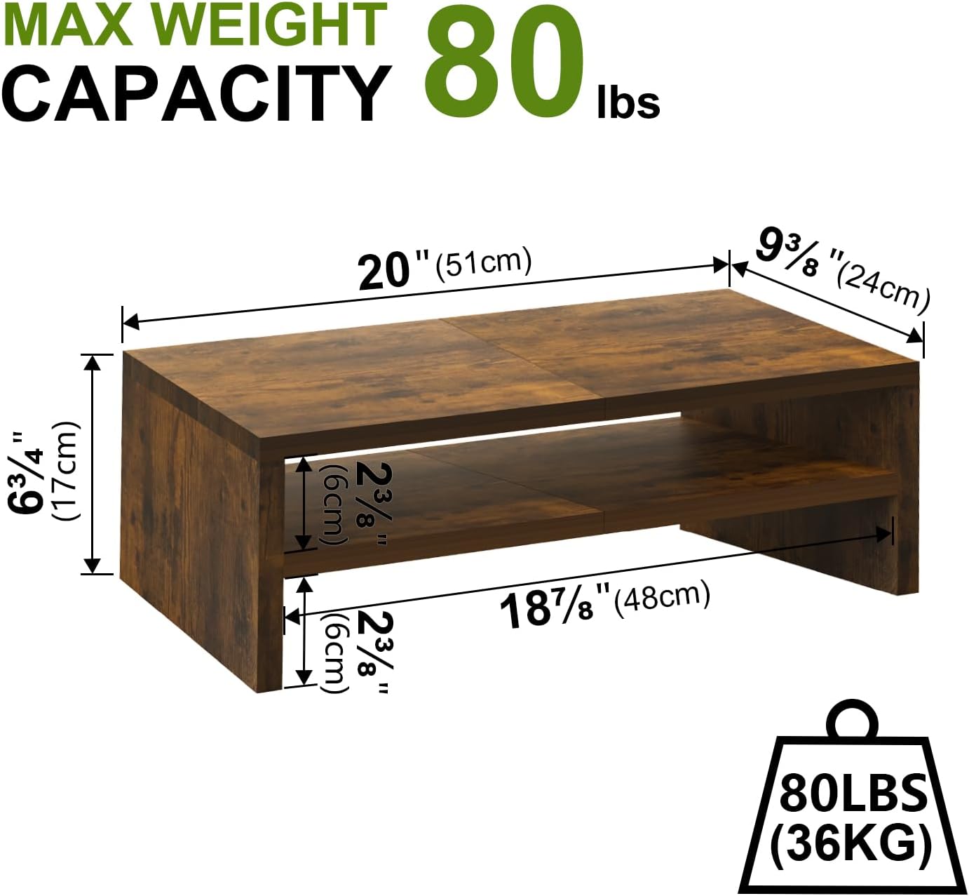 TEAMIX 2 Tier Wooden Monitor Riser Stand, Desktop Stand with storage for Laptop/PC/Printer/Keyboard, TV Stand Shelf Home Office Desk Accessories