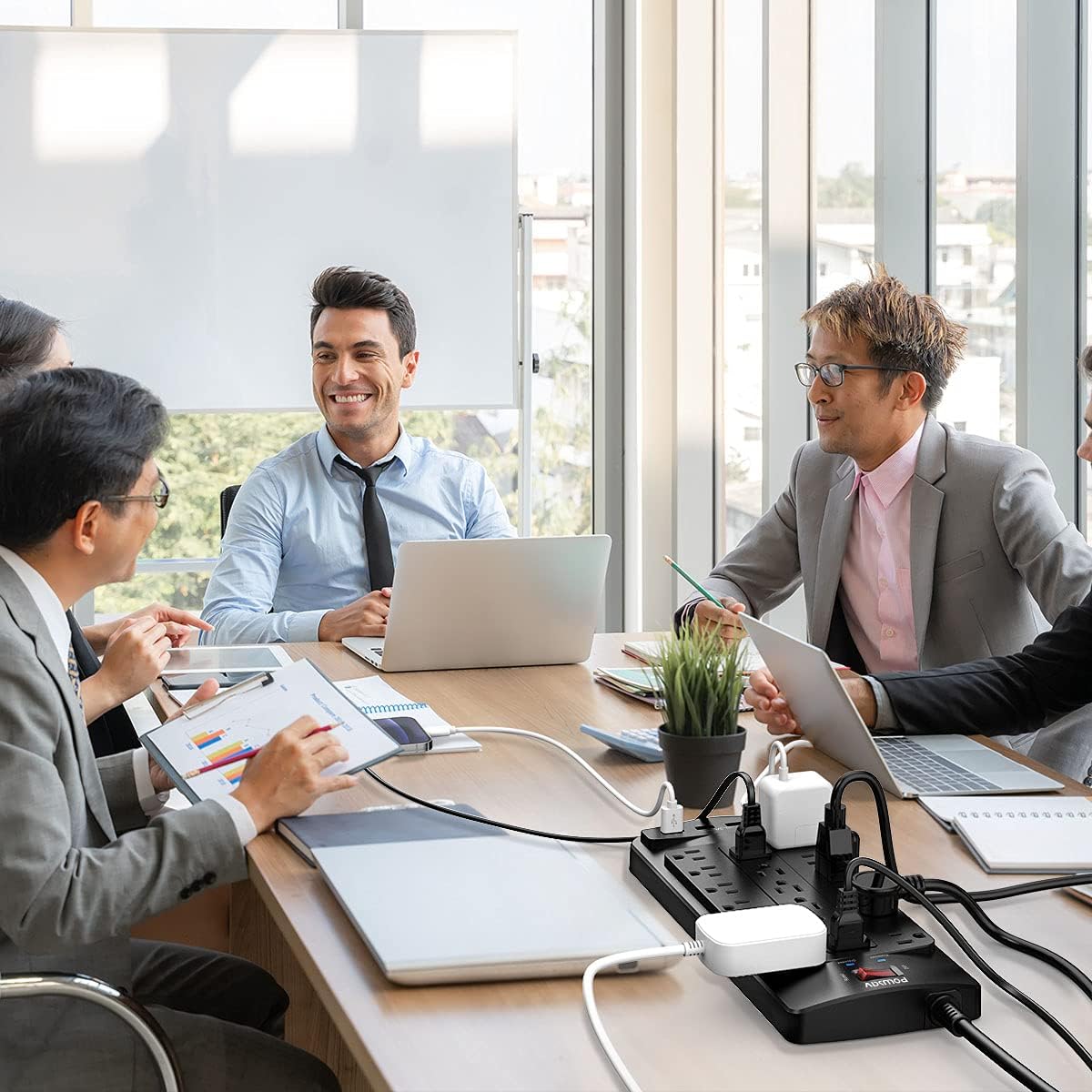 - Power Strip with 18 outlets & 4 USB Ports: 18AC outlets & 4 USB ports (5V/3.0A, 17W) power strip with 6 feet Flat Plug Heavy Duty power extension cord(1875W/15A), surge protector(2100 Joules) with overload protection protects against spikes and fluctuations,Lots of outlets for a computer desk works great for all the electronics a gamer needs.