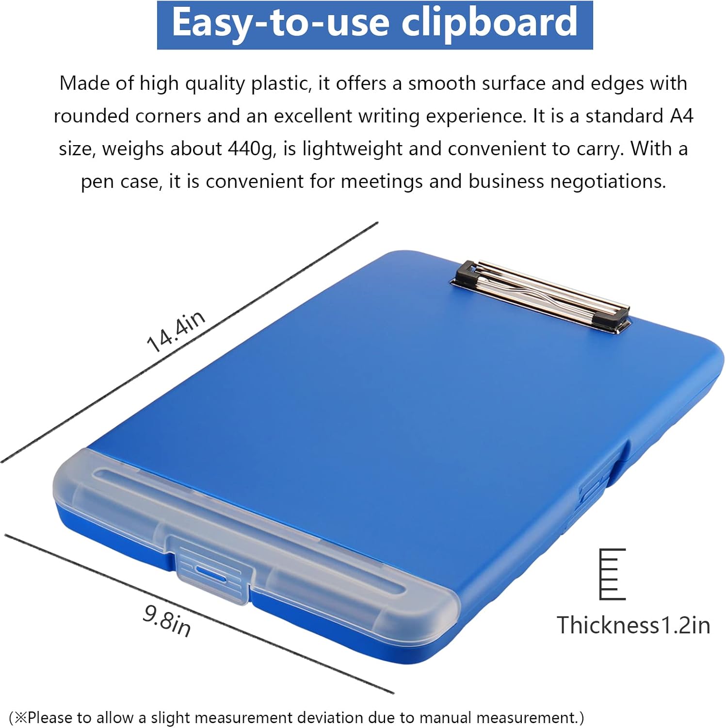 Clipboard with Storage, A4 Binder Clipboards with Pen Holder,Heavy Duty Plastic Storage Clipboards with Low Profile Clip,Nursing Clipboard Folder Side-Opening,Smooth Writing Clip Board for Office-Blue