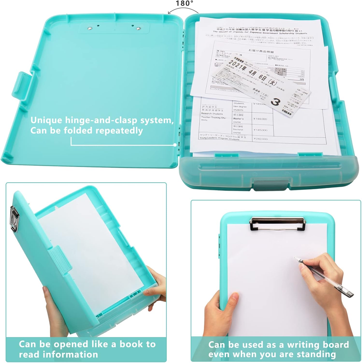 - Durable & Safety: The clipboard folder is made of sturdy & water-proof polypropylene which is stain resistant and easily be wiped down to assure clipboard is kept clean. The thick casing keeps your important documents from getting wet. Unique hinge-and-clasp system allow it stands up to daily use