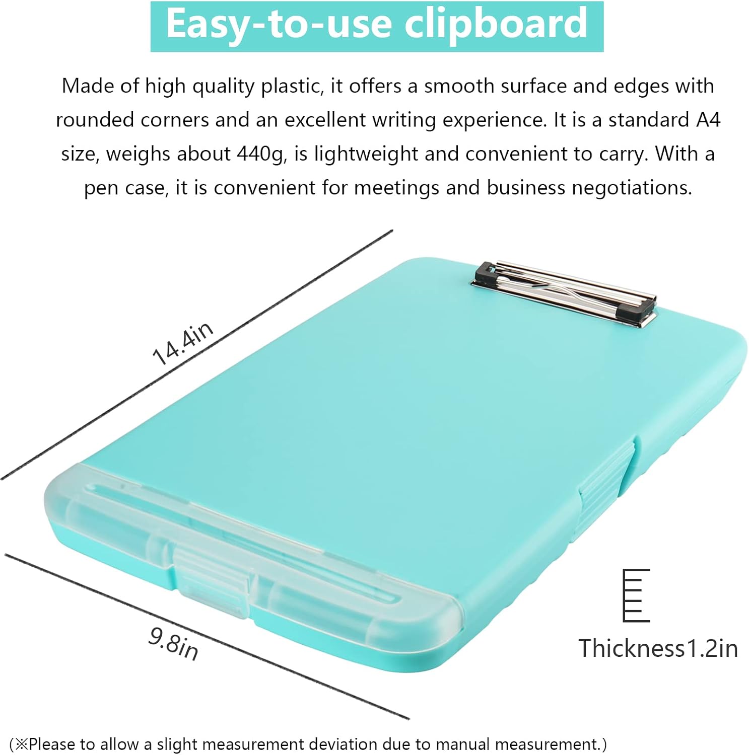 - About Storage Clipboard: Size: 14.4 x 9.8 x 1.2 inch, About 450g, Lightweight for easy carry throughout the entire workday! The metal clips can hold paper without leaving marks. With a hanging hole on the back, you can hang on the wall to save space