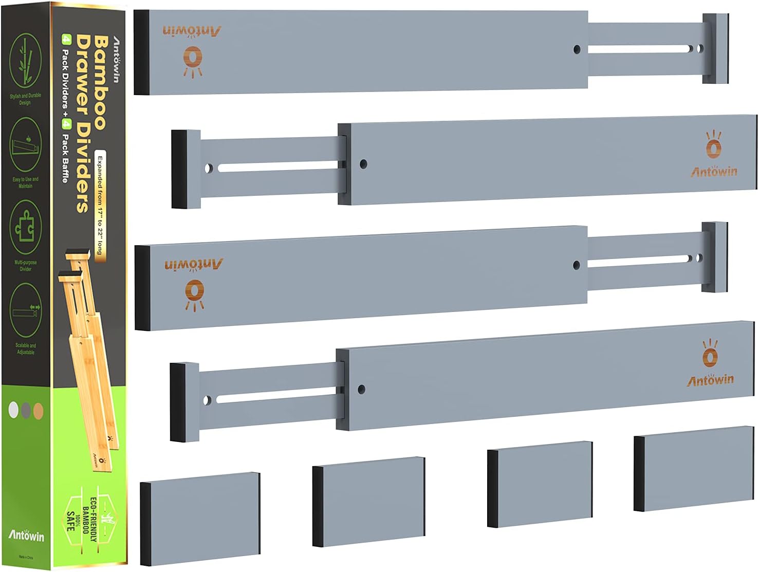 - ORGANIZED DRAWERS: The drawer dividers from ANTOWIN are the best way to avoid a mess in the kitchen, bathroom, bedroom or elsewhere in your home or office. These bamboo drawer separators will help you keep everything organized and tidy at all times!