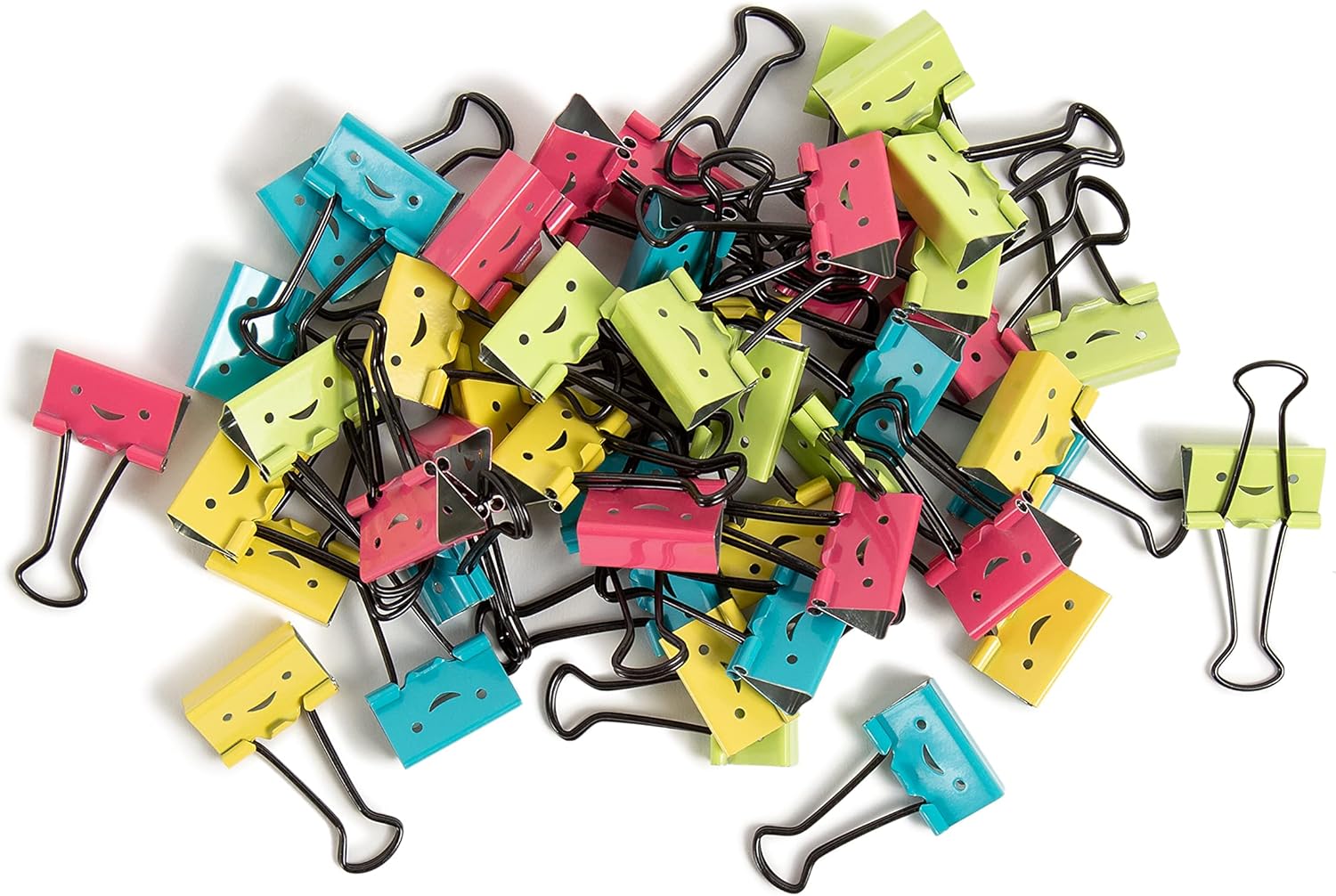 U Brands Happy Face Binder Clips, Bright Colors with Black Prongs, Office Organization Supplies, 32mm, 48 Count