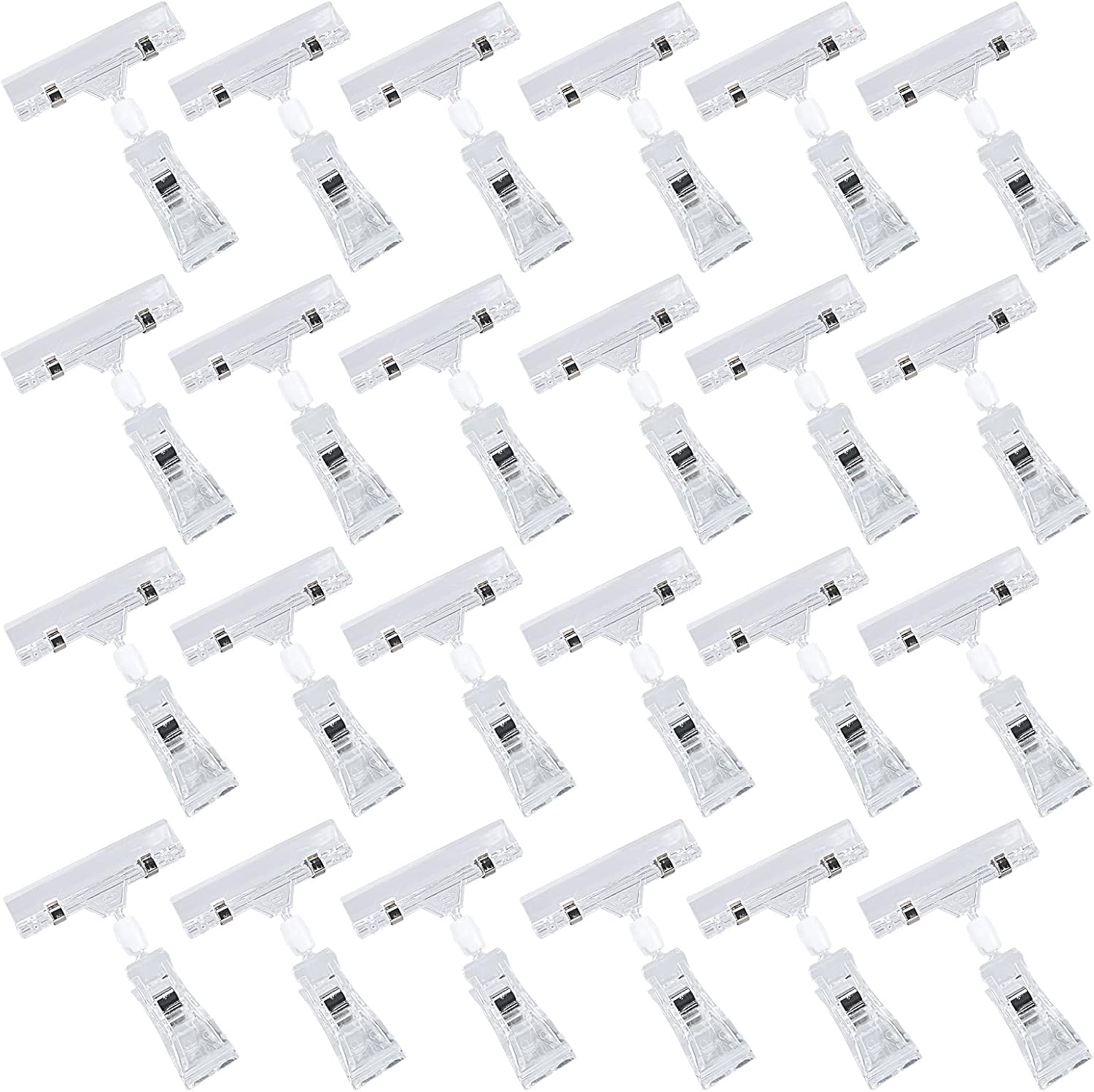 Mlici Sign Clip Holder for Display, 26 Pieces Merchandise Clothing Rack Signs for Retail, Clip on Clear Sign Holder for Label, Basket, Business Cards