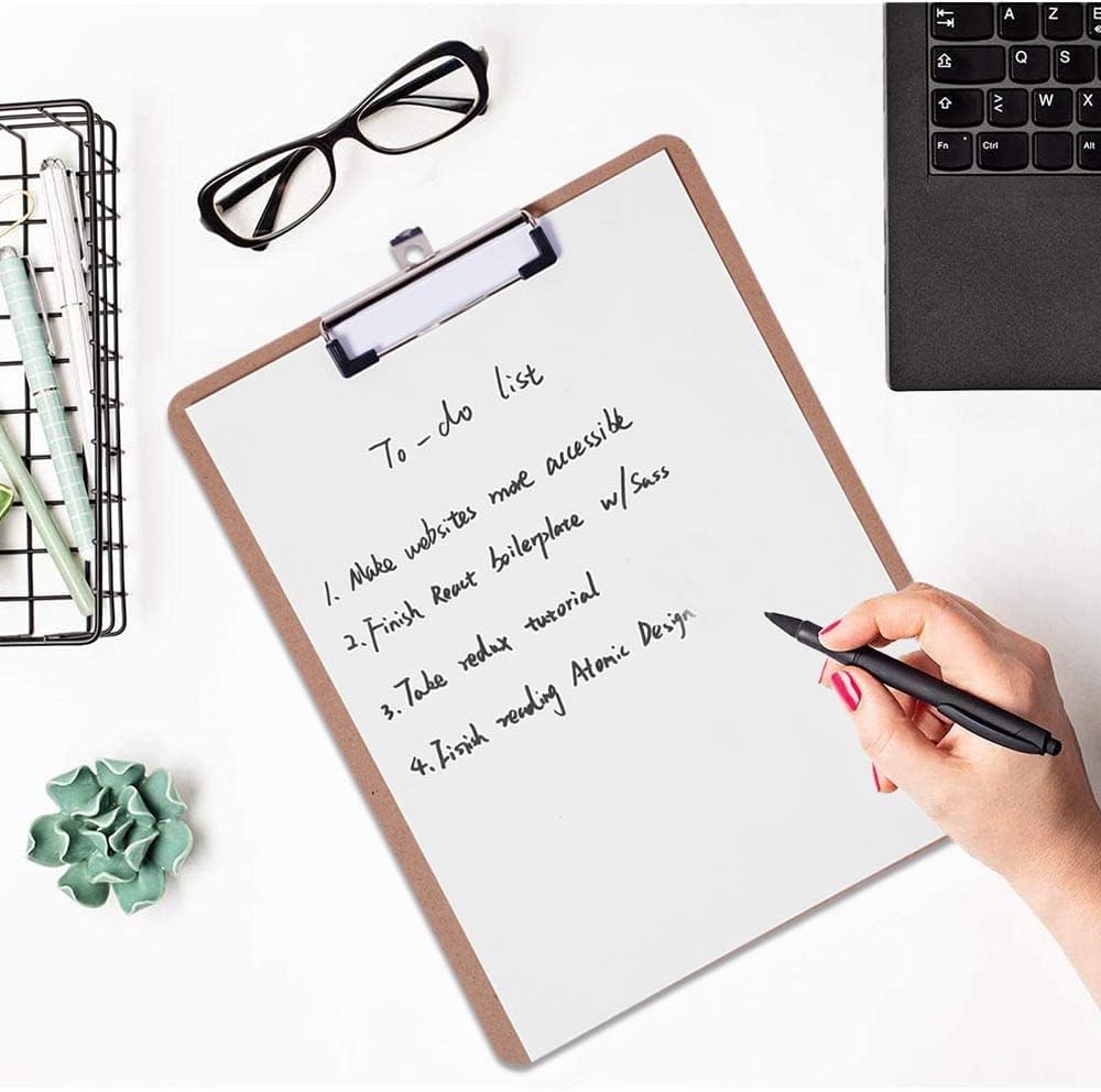 - Eco-Friendly Wood Clipboard : Made from 100% recycled wood fibers, lightweight and sturdy. Finished on both sides with smooth, rounded edges.