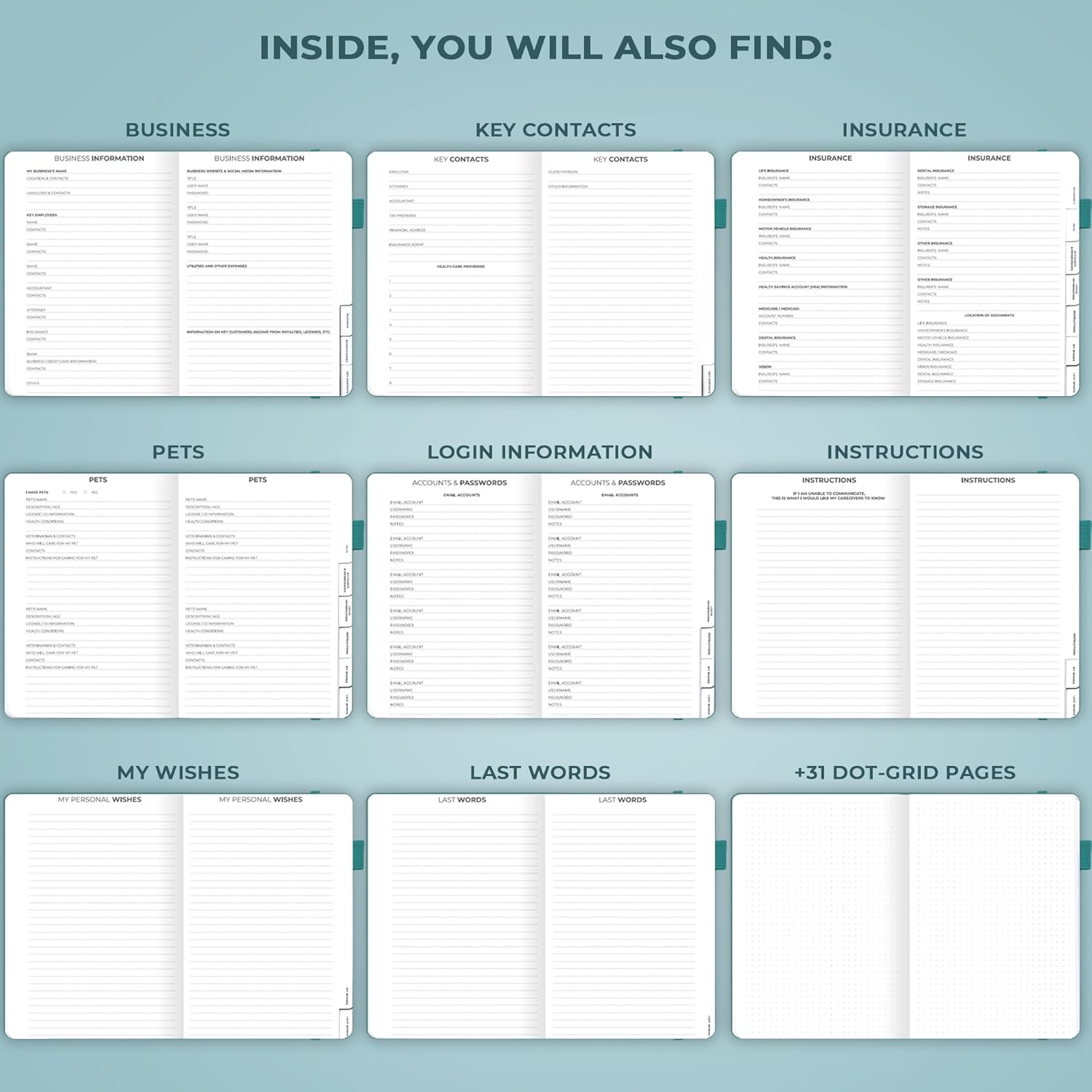 - PREPARE DETAILED INSTRUCTIONS TO GUIDE YOUR LOVED ONES: This guided final arrangements planner is an easy-to-use tool for organizing all essential personal information, from medical data to passwords and financial records.