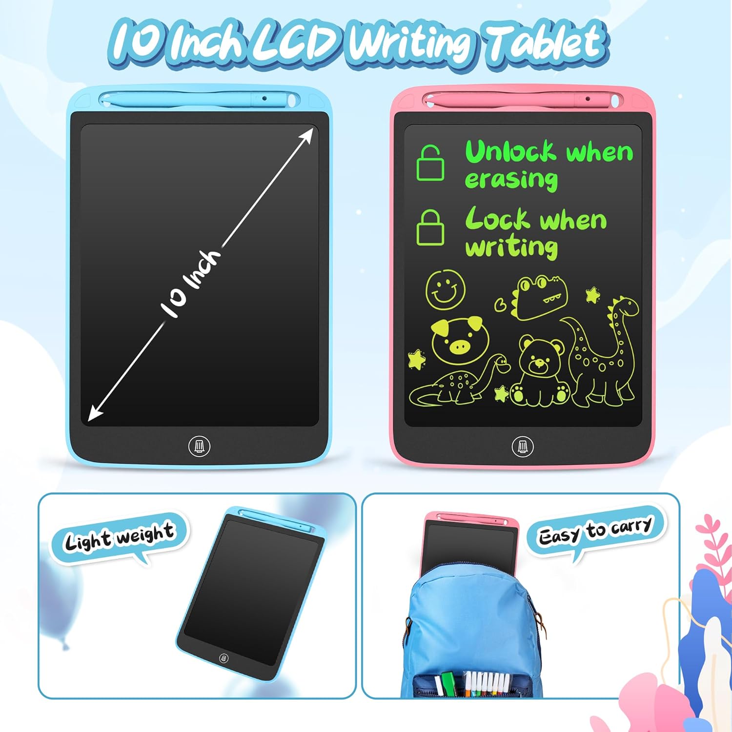 LCD Writing Tablet for Kids 10 Inch, 2 Pack Colorful Doodle Board for 3 4 5 6 7 8 9 10 Year Old Kids, Sensory Toys Educational Erasable Sketch Pad Toys for Toddler Girls Boys Learning (Blue+Pink)