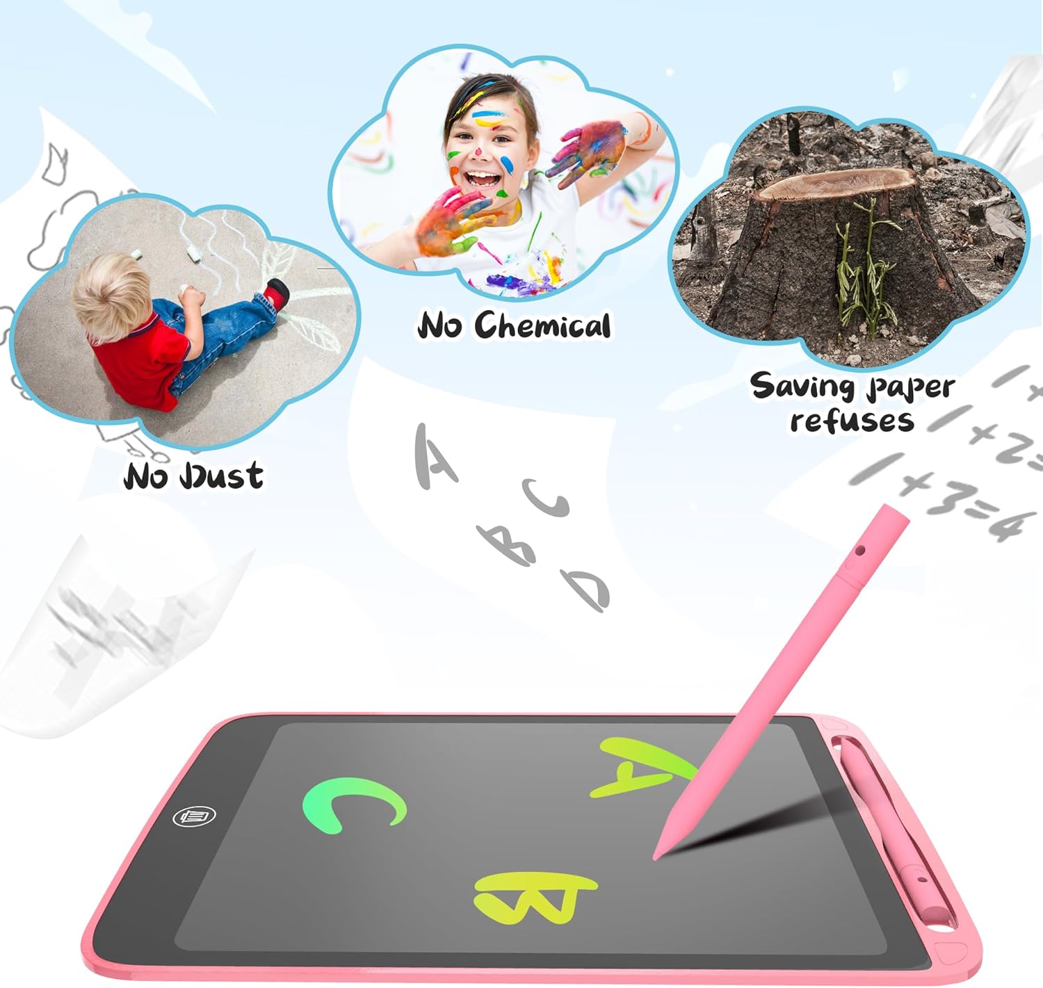 - 【Eye Protection】The kids' electronics writing tablet adopt lcd screen, no radiation, no glare, Its safe and comfortable when children use for a long time. The writing tablet provides a good place for kids to drawing, writing, graffiti, which can develop kid's imagination and practical ability