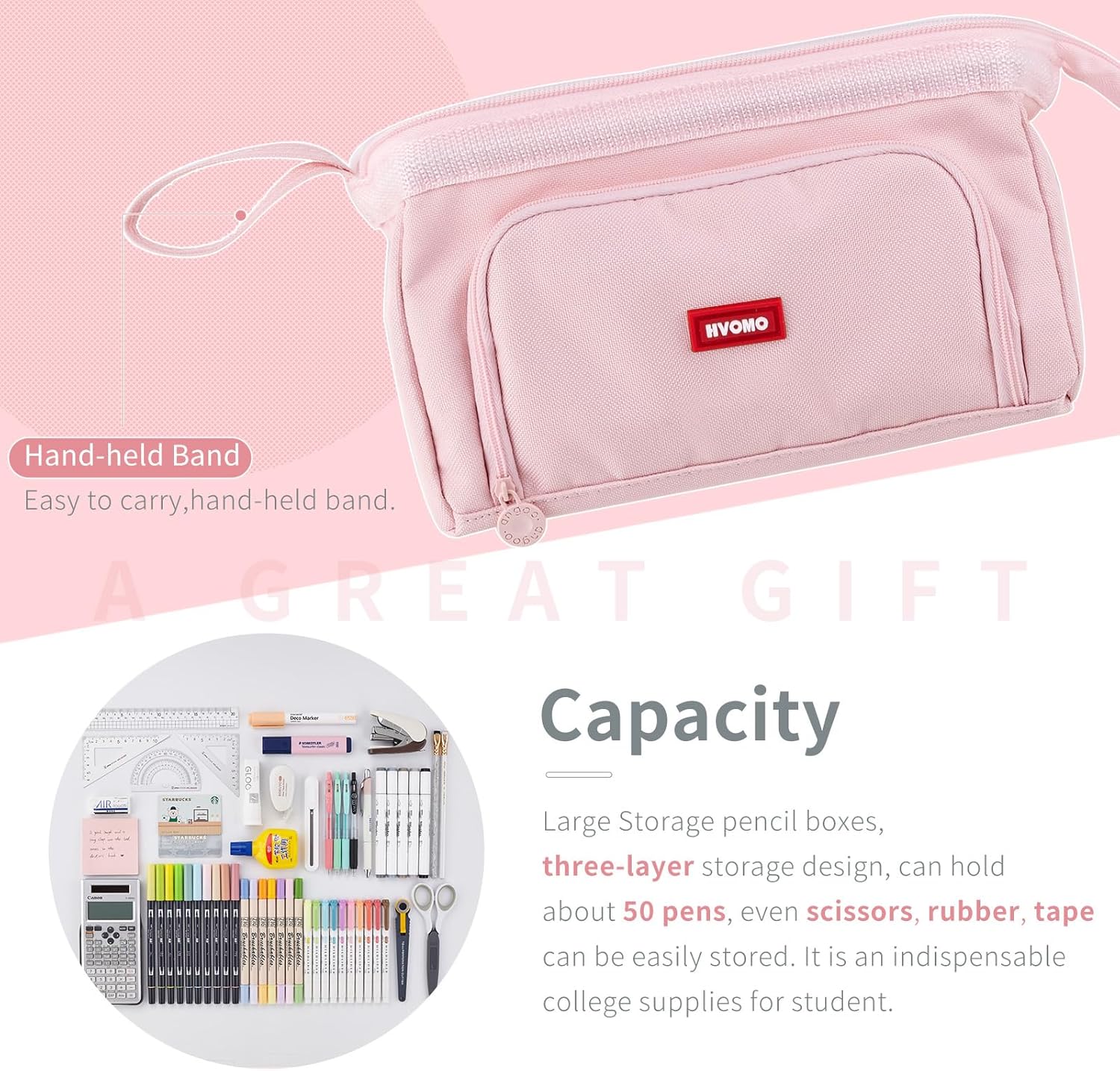 HVOMO Pencil Case Large Capacity Pencil Pouch Handheld Pen Bag Cosmetic Gift for Office School Teen Girl Boy Men Women Adult (Pink)