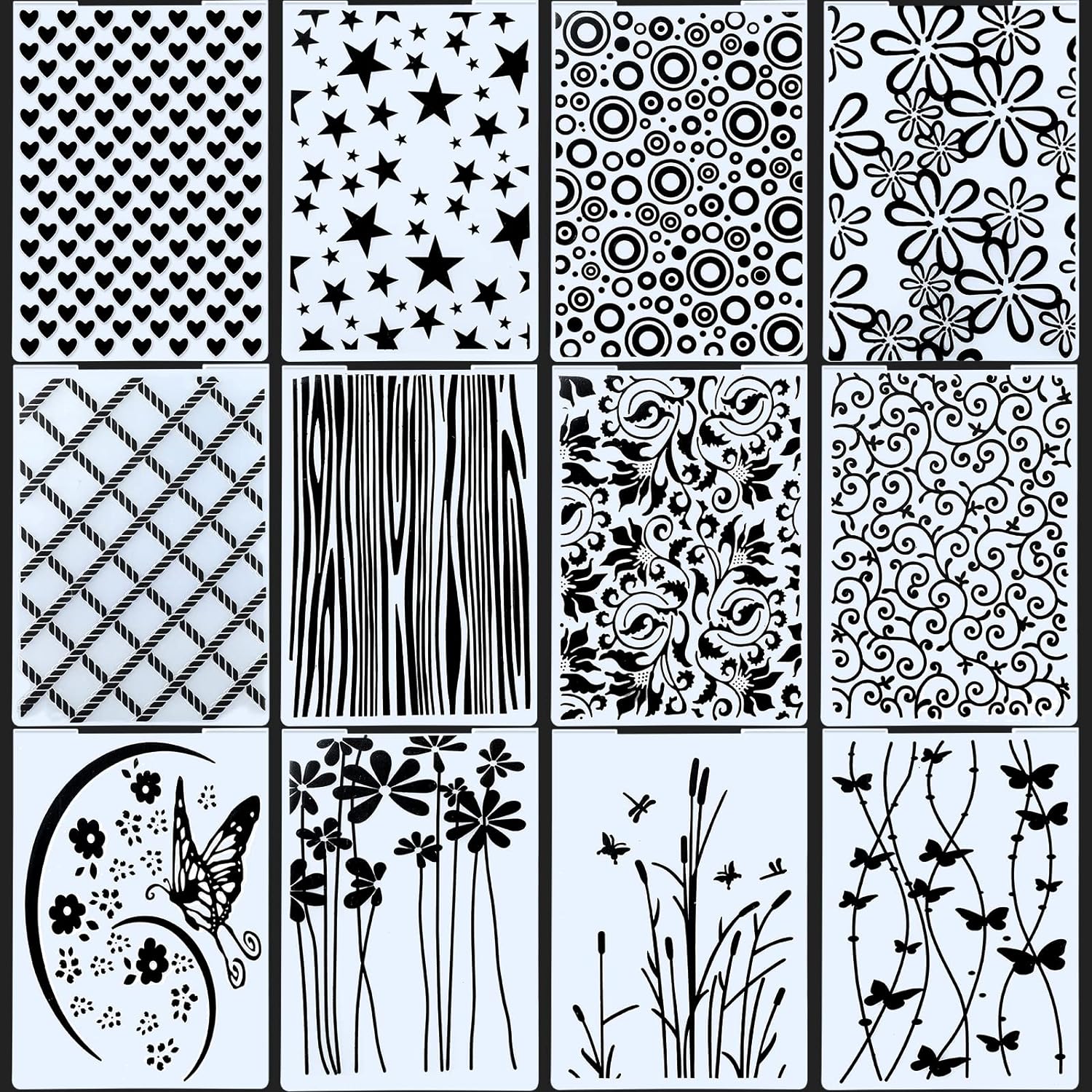 12 Pieces Embossing Folders DIY Craft Template Stencil Butterfly Star Embossing Templates Paper Card Decorating Mold Scrapbook Album Making Tool for Card Scrapbook DIY Craft, 11.7 x 3.9 Inch