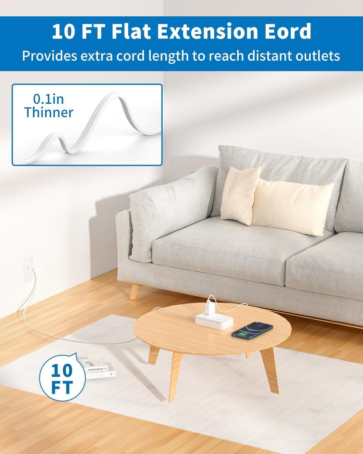 Surge Protector Power Strip 10 ft, Flat Plug Extension Cord with 6 Outlets 4 USB Ports, Outlet Extender Long Cord, Overload Protection, Extension Cord with Multiple Outlets for Indoor, Home, Office