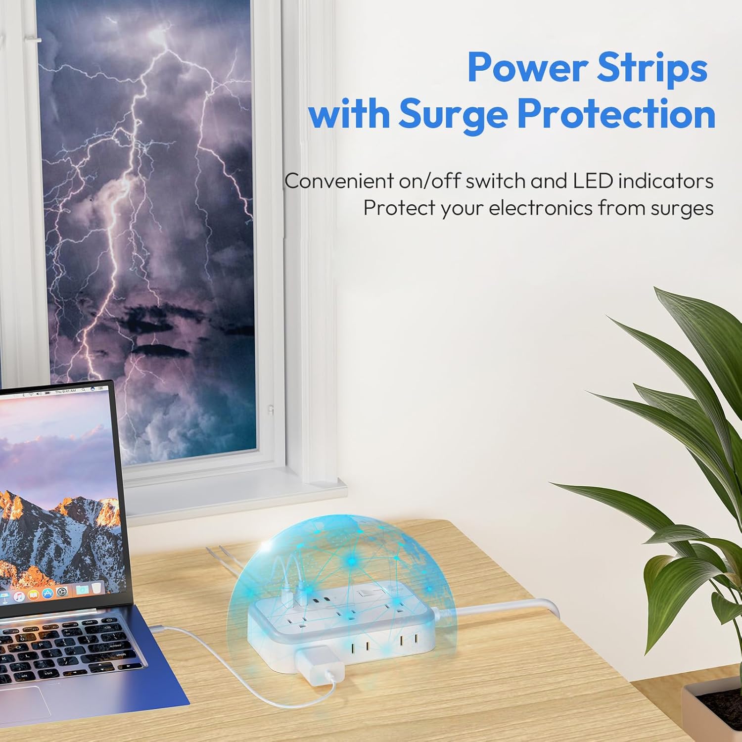 - 【 Reliable Surge Protector with Overload Protection Switch 】 The power strips surge protection protects your electrical appliances from lighting, surges, or spikes. The extension cord with multiple outlets has a circuit breaker and an OFF/RESET switch that automatically shuts off to protect your equipment once power overload is detected (rated power: 1250W). A white soft indicator tells you whether the flat plug power strip is working. Safe and convenient.