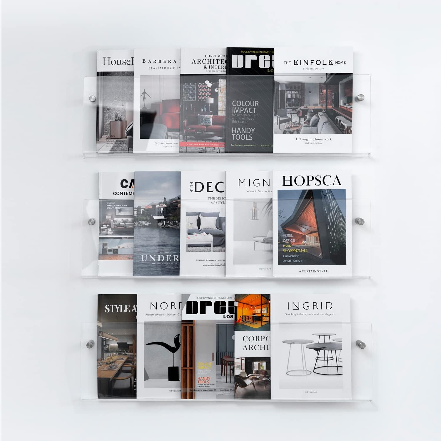 - XOHYW magazine rack can effectively store journals, brochures, magazines and other materials in office, waiting room and education center. Its transparent display is easy to install on the wall and integrates into any office decoration. Thus it suitable for waiting room, lounge, office, lobby, community center, reception area, doctor's office, school, library and any place where literature needs to be displayed.