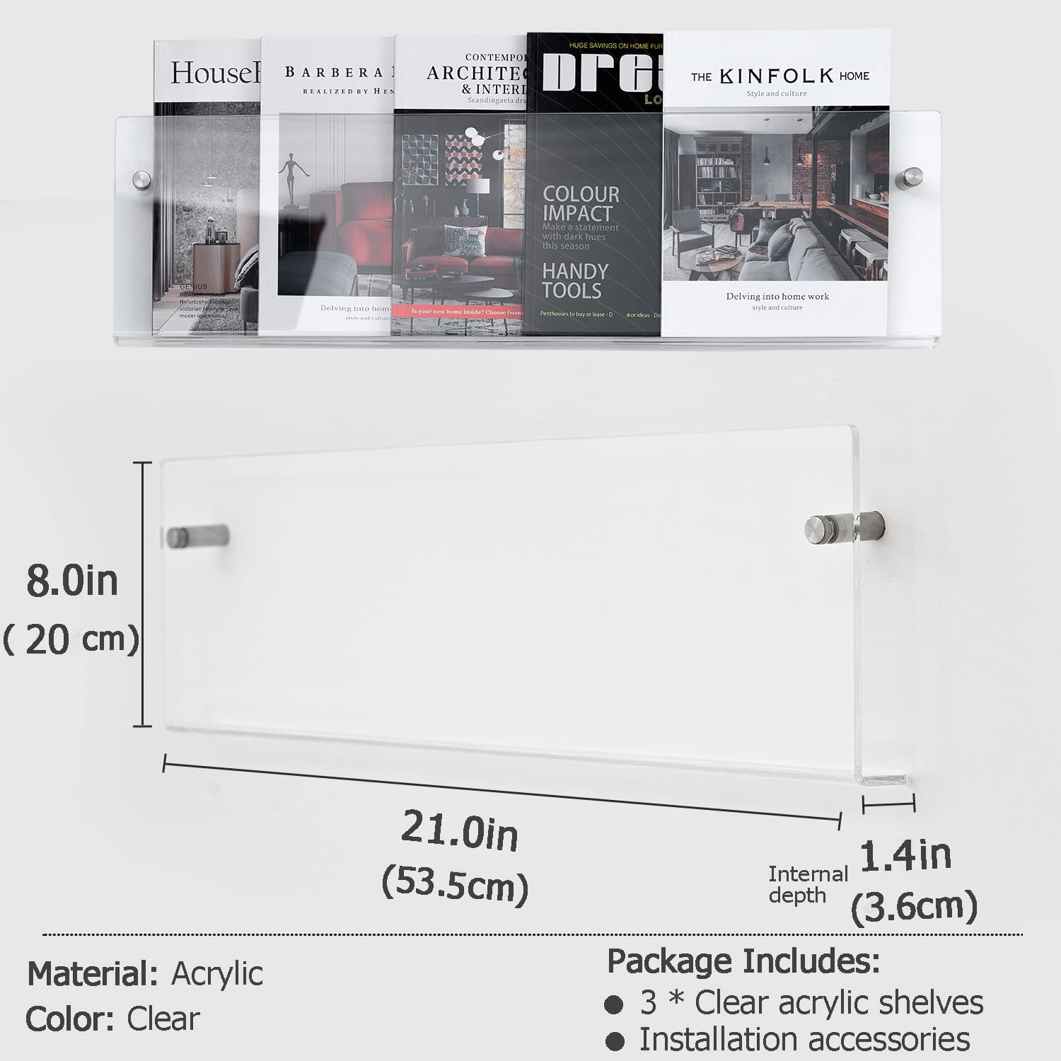 - Our magazine rack is made of high-quality, lightweight and scuffing-resistant acrylic and its thickness is 5mm, which has a long service life. It does not have sharp edges and it’s not too heavy, which looks clean and professional.