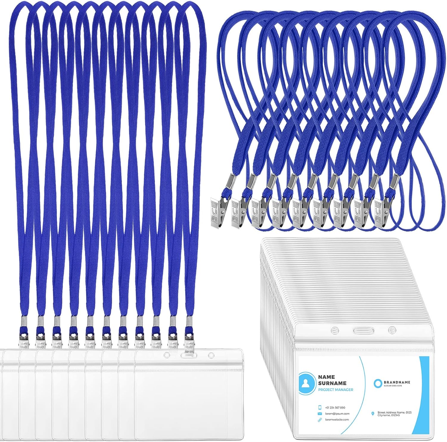 - Package contents: 100 pieces of clear ID card holders with 100 pieces of flat neck lanyards that are available in bright color, which are suitable for most bag tags and ID cards, the enough quantity are enough for business travel office supplies