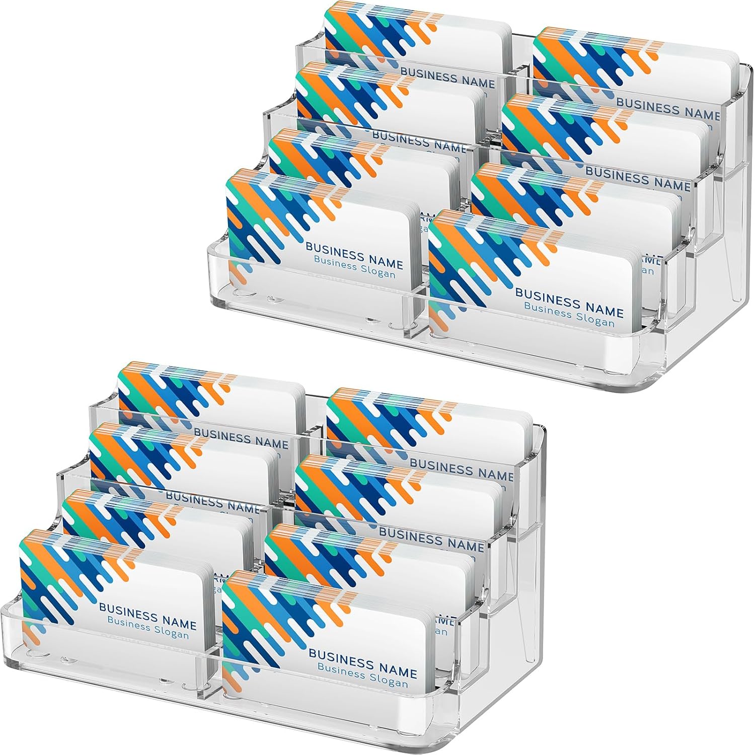 MaxGear Acrylic Business Card Holder for Desk Multiple Business Card Holders, Premium Cards Stand, Clear Plastic Cards Display Holder with 4 Tier for Exhibition, Home and Office, 8 Pocket, 2 Pack