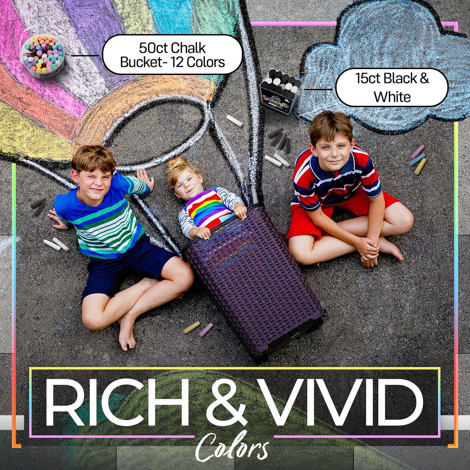 - Handy Chalk Bucket: Keep your chalk organized with a reusable bucket featuring a handle and lid. Whether you're storing bulk chalk for your next art project or a colorful display, this sidewalk chalk bulk set has you ready for any creative adventure