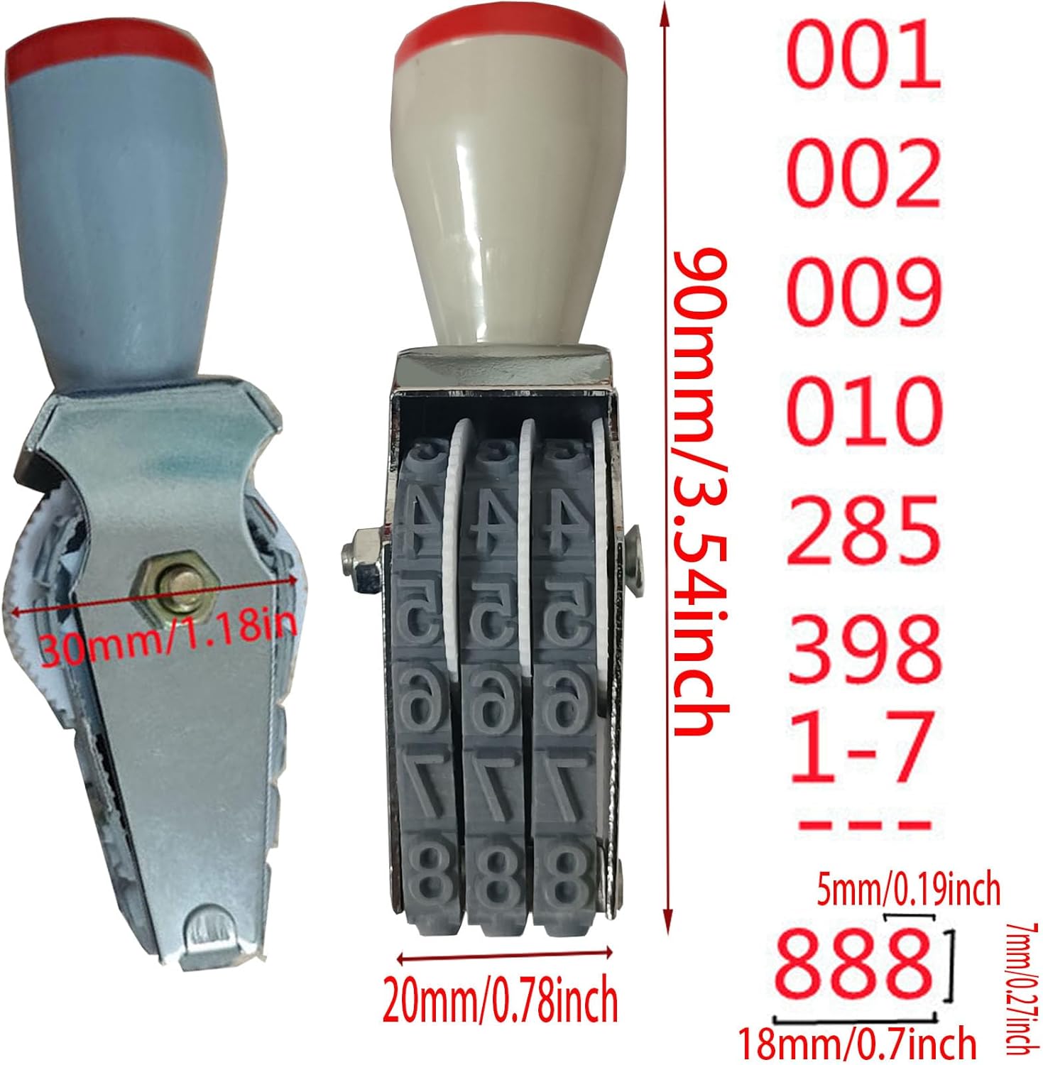 WANLIAN 3-Digit Adjustable Rubber Number Stamp - Customizable 0-9 Numbers & Symbols for Packaging, Office, Labels (18x7mm Imprint, Gray-Red)