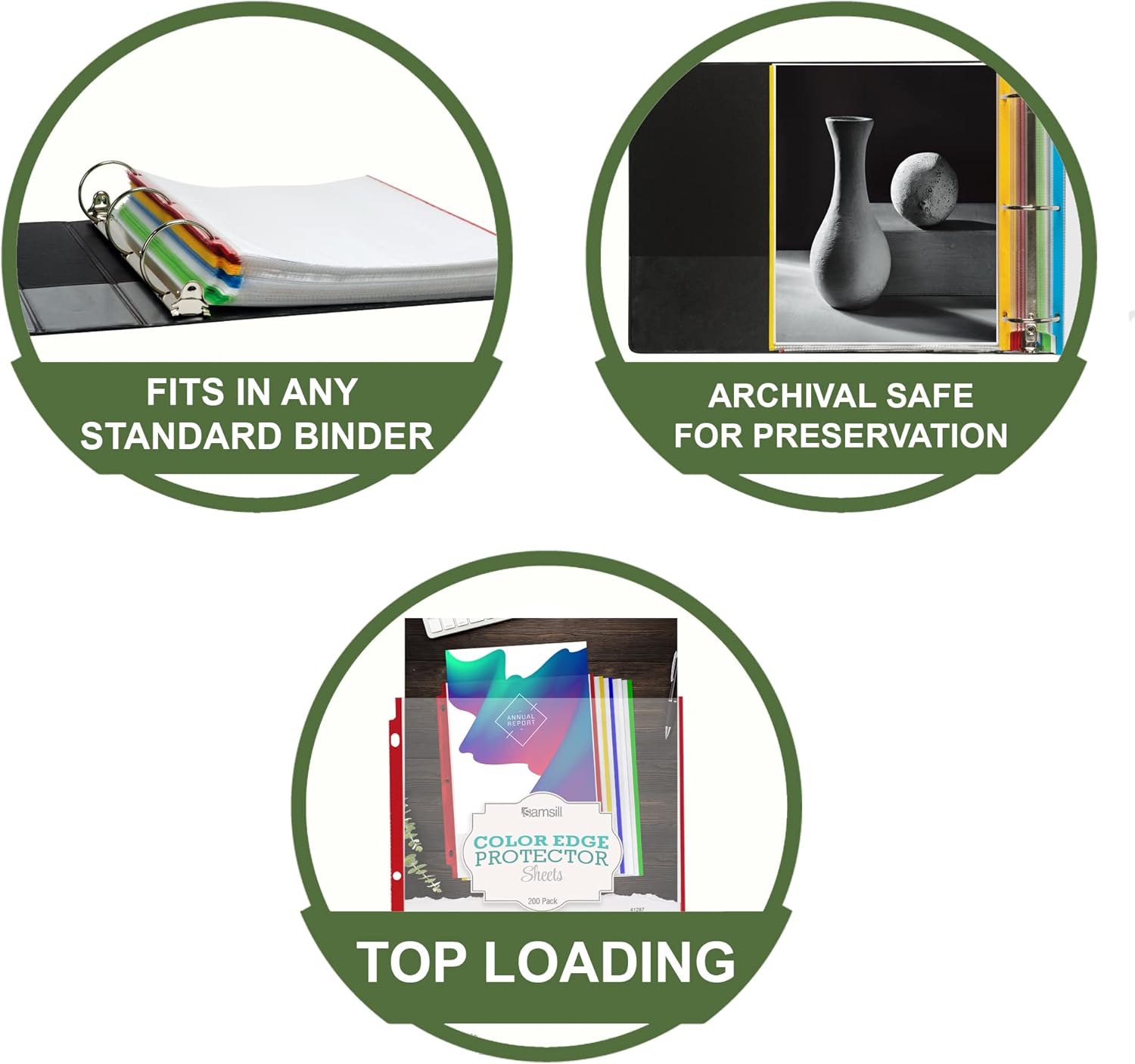 Samsill Color Edge Sheet Protectors 8.5 x 11 Inch, Page Protectors for 3 Ring Binder, Standard Weight, Clear Sheet Protector, Letter Size, Top Loading, Acid Free, 200 Pack