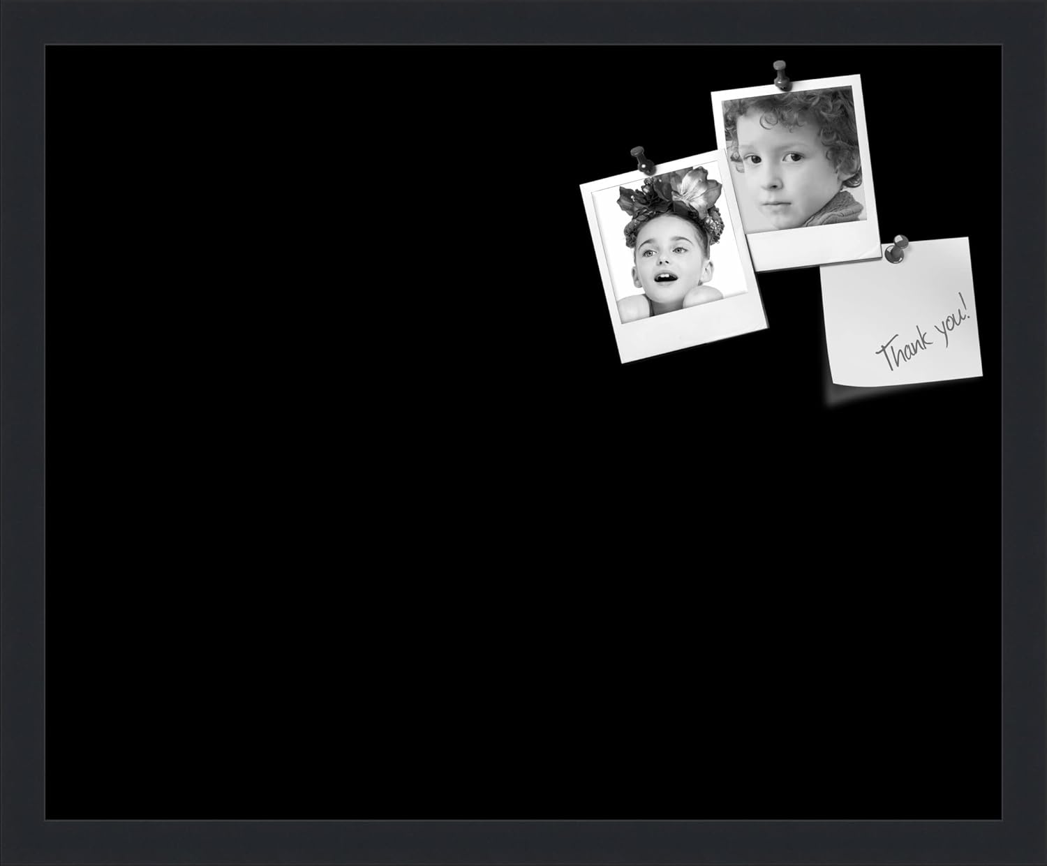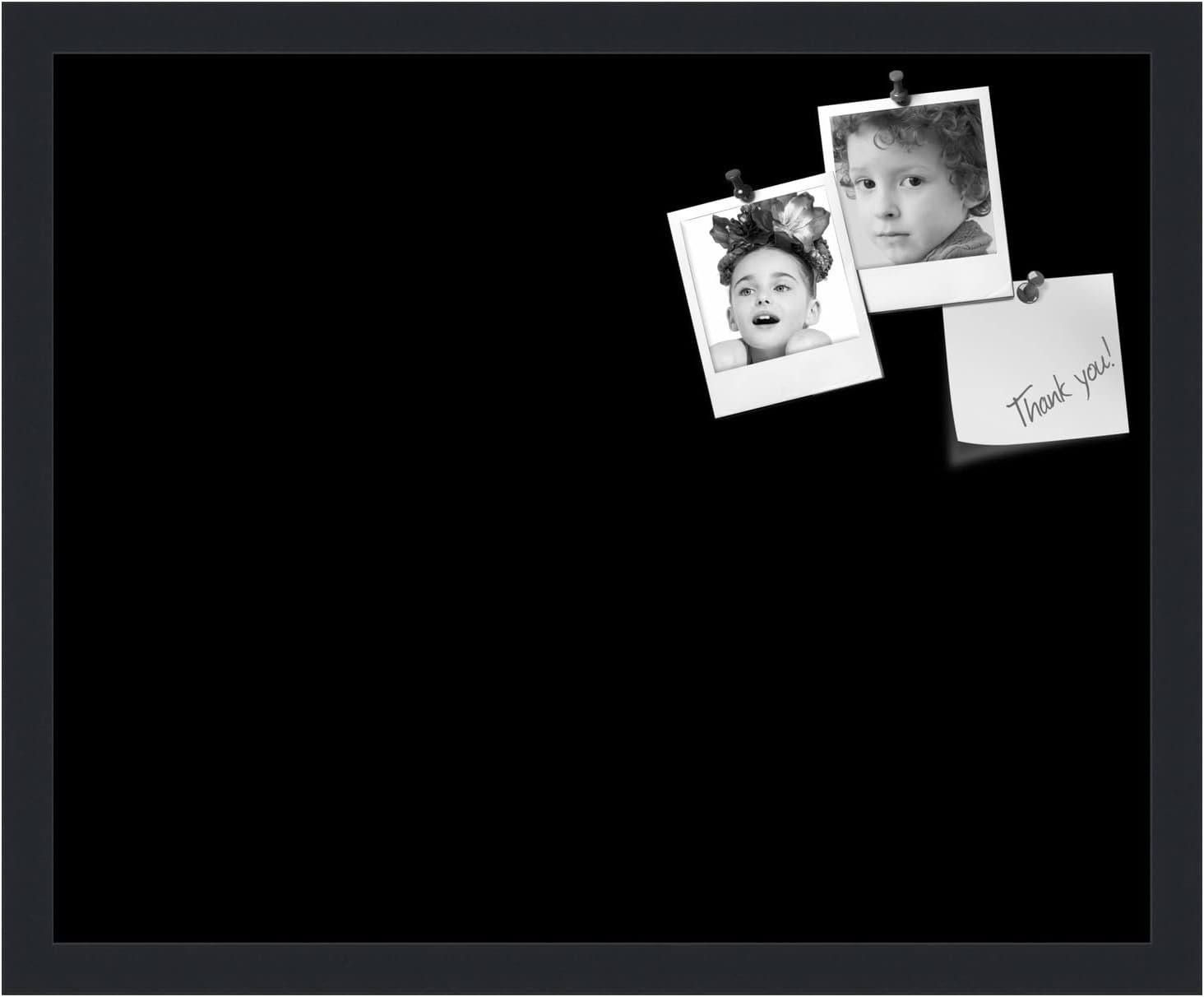 PinPix 21x17 Inch Cork Bulletin Board. This Decorative Framed Pin Board Comes with Solid Black Design and a Satin Black Frame. Ideal for Home Office Decor or Message Board (PinPix-622)