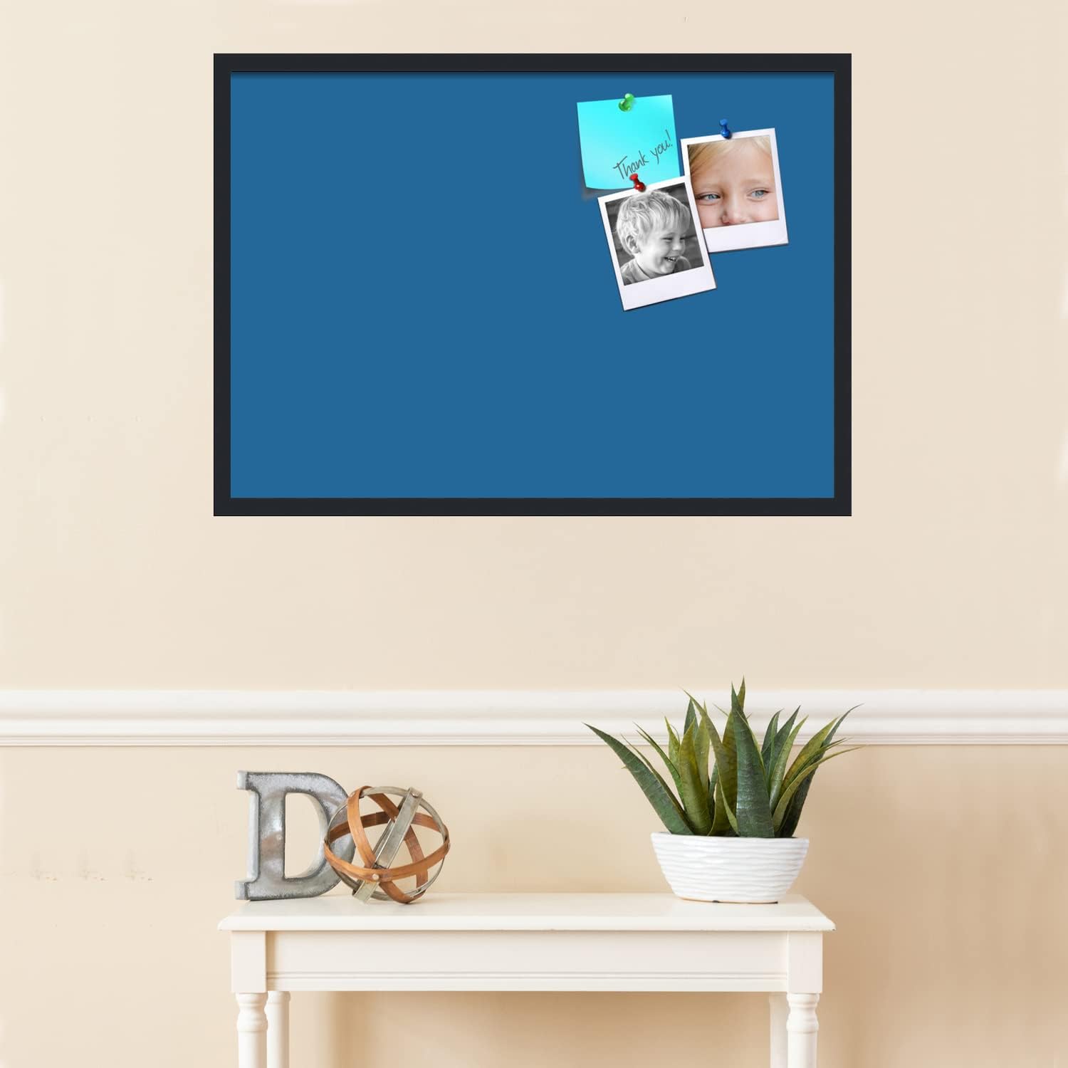 PinPix 34x24 Inch Cork Bulletin Board. This Decorative Framed Pin Board Comes with Navy Pastel Design and a Satin Black Frame. Ideal for Home Office Decor or Message Board (PinPix-1811)