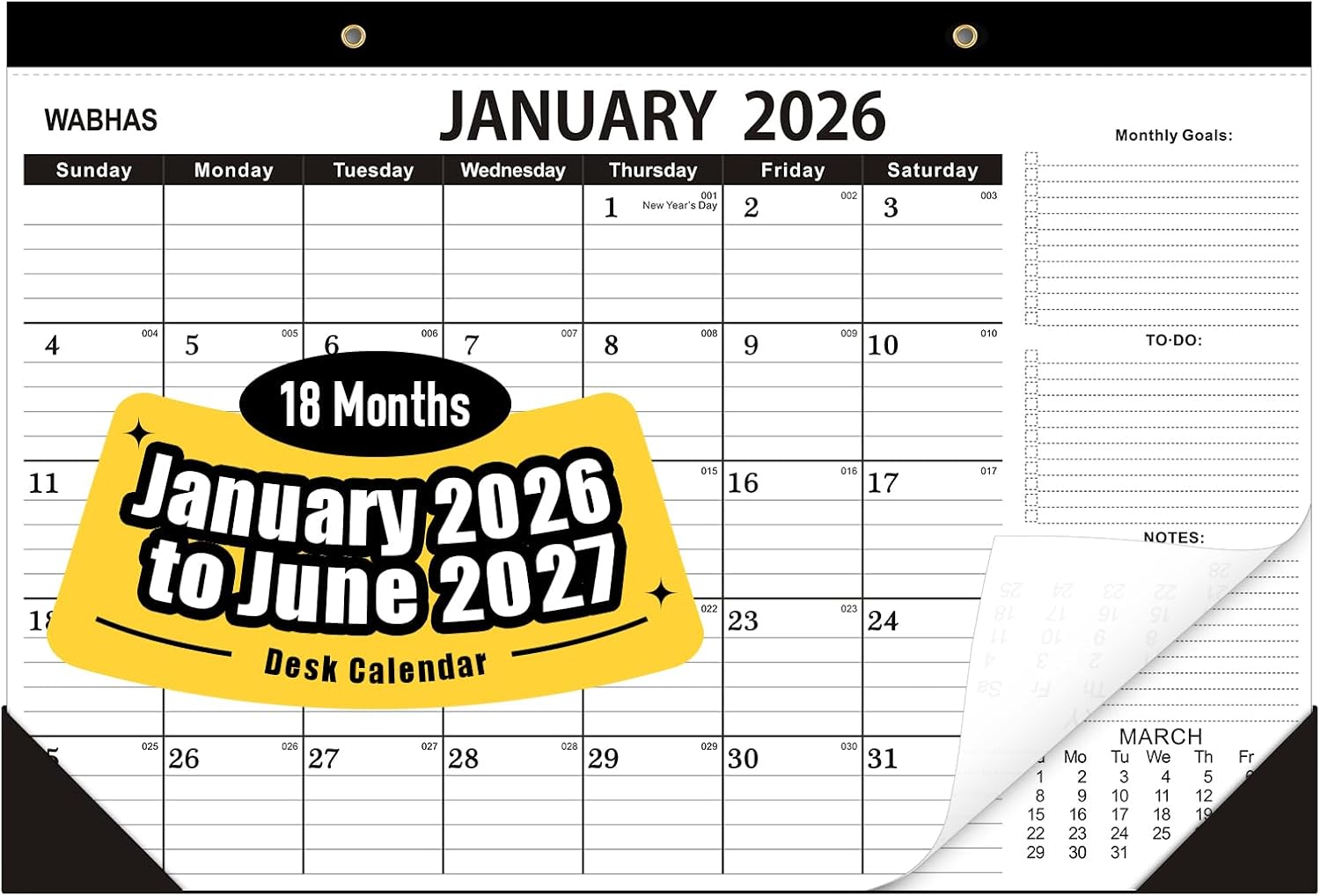 Desk Calendar 2026,2026 Desk Calendar-January 2026 to June 2027,18 Months-12x17 in,2026 Calendar,Calendar 2026 Perfect for Your Home,School or Office.