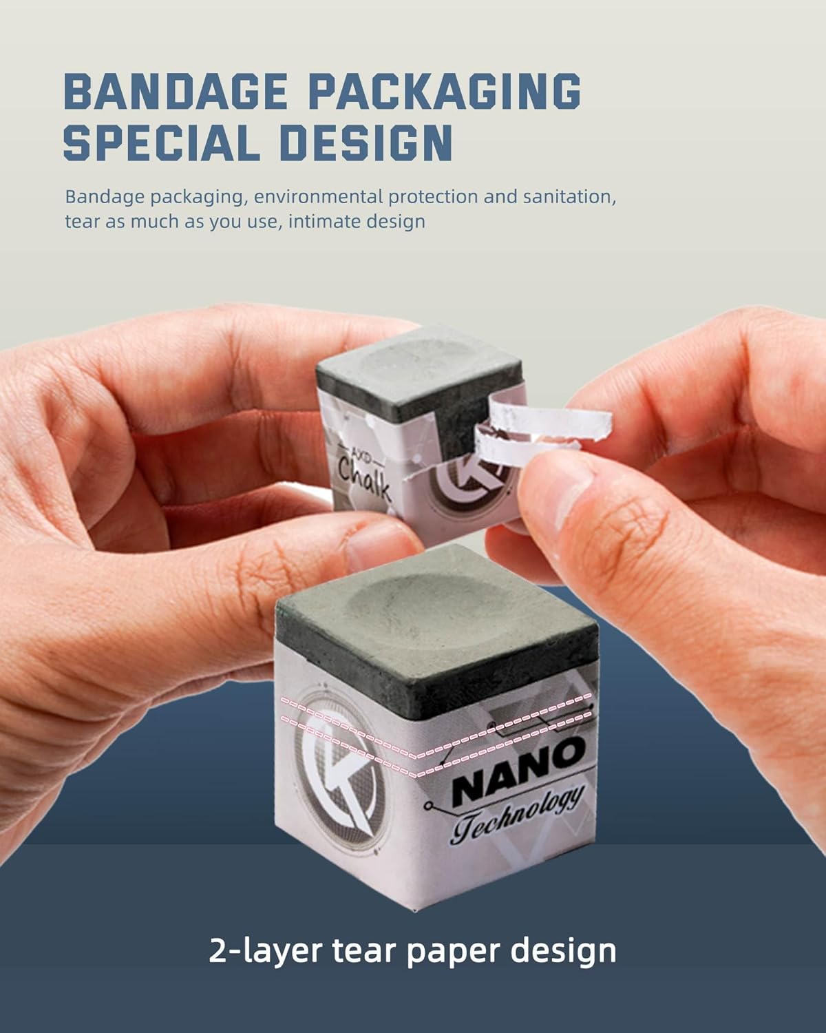 - Nano Technology: KONLLEN pool hand chalk utilizes revolutionary nano-materials, ensuring an ultra-fine texture with superior adhesion. It resists flaking and spreading, making it more environmentally friendly and healthier. With KONLLEN, you can achieve the best feel and performance in any condition.