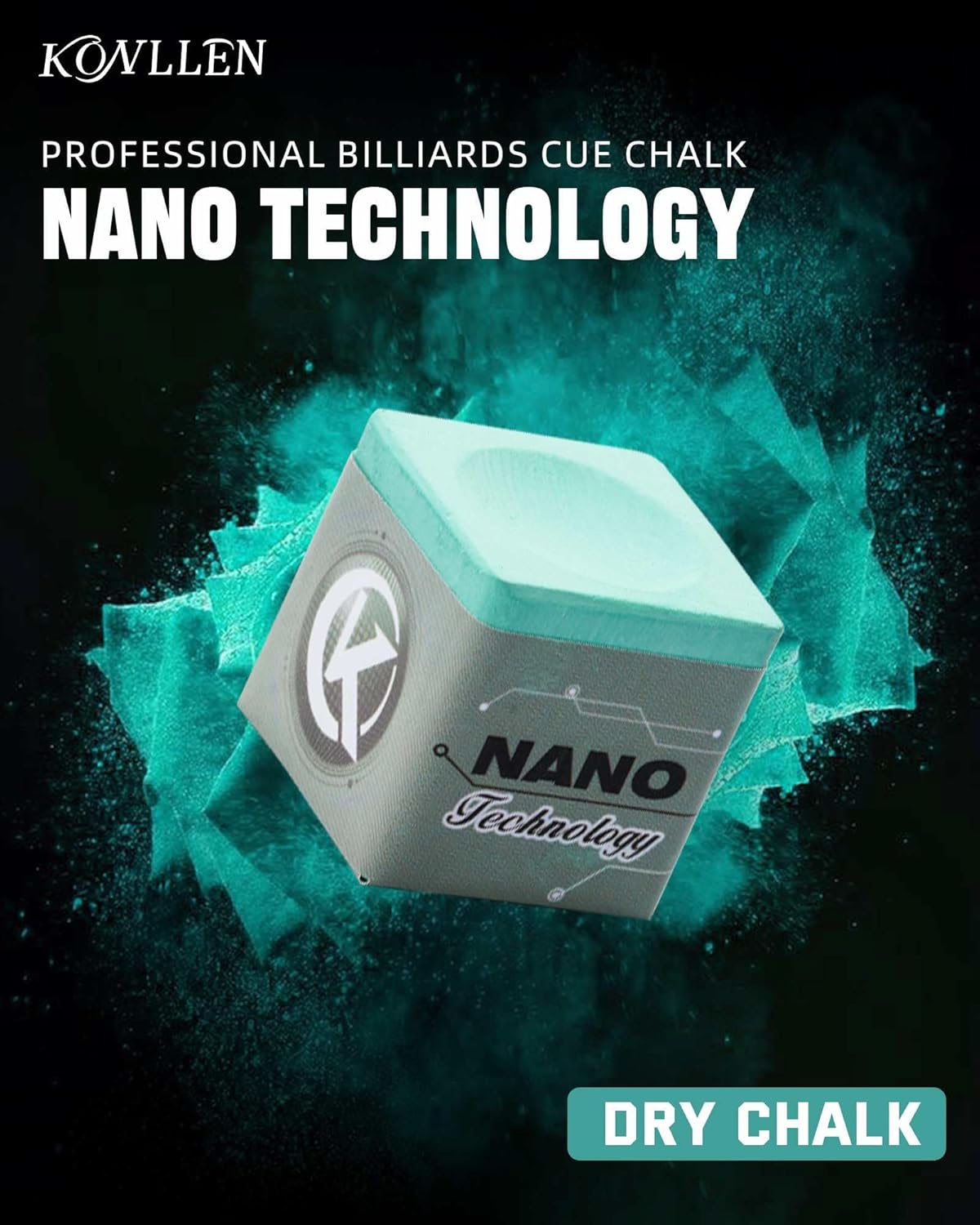 - Nano Technology: KONLLEN pool hand chalk utilizes revolutionary nano-materials, ensuring an ultra-fine texture with superior adhesion. It resists flaking and spreading, making it more environmentally friendly and healthier. With KONLLEN, you can achieve the best feel and performance in any condition.