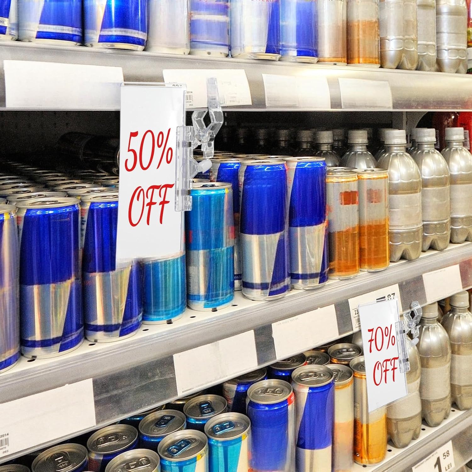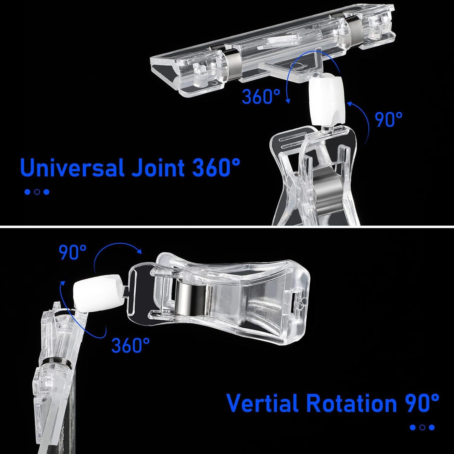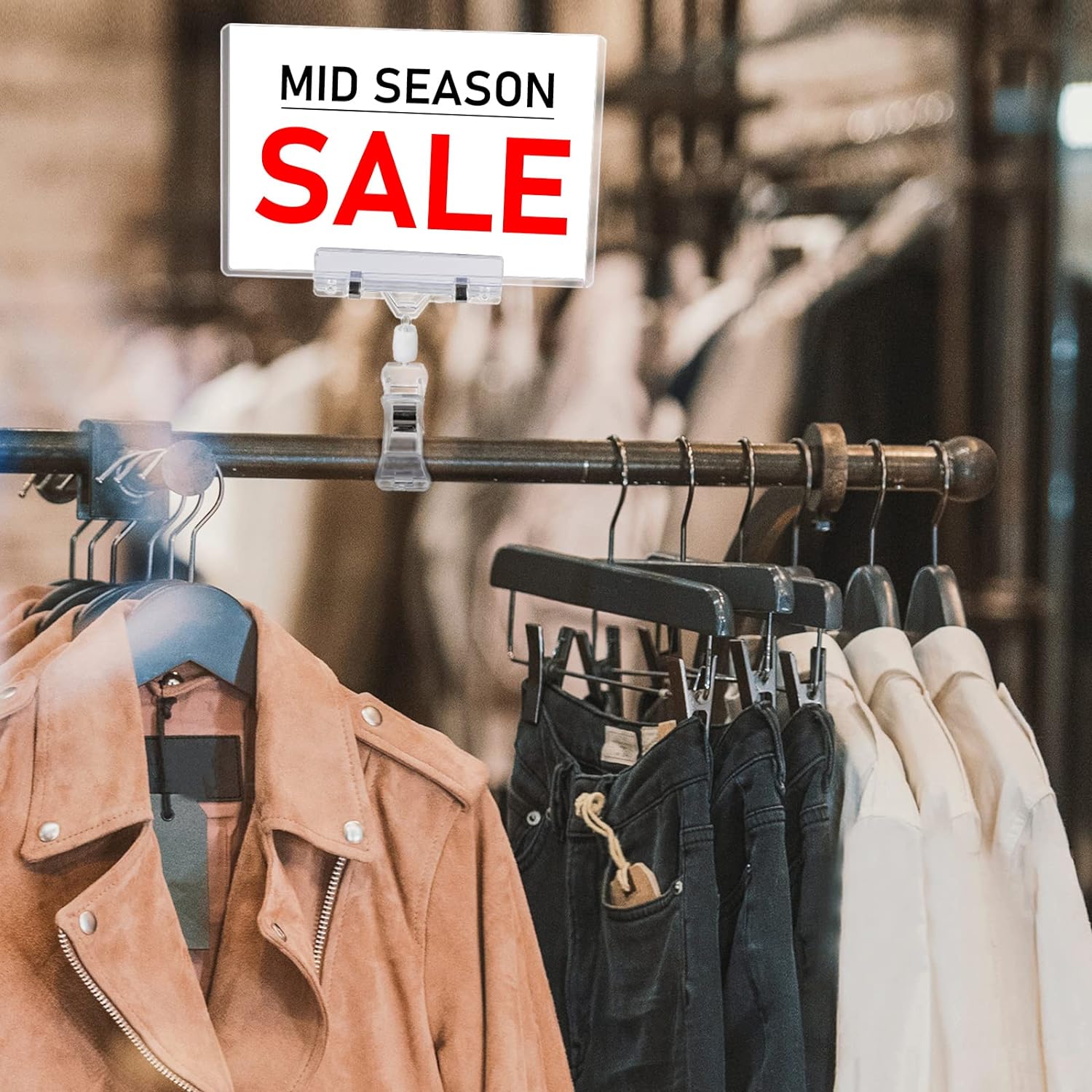 - Pop Clip Sign Holder: these merchandise sign clip is made from PC, strong clamping force, and can be fixed to the rack or shelf, rugged, reliable and easy to clean; In addition, tag clip is flexible and can be 90 degree or 360 degree bending and rotating logo to achieve complete display