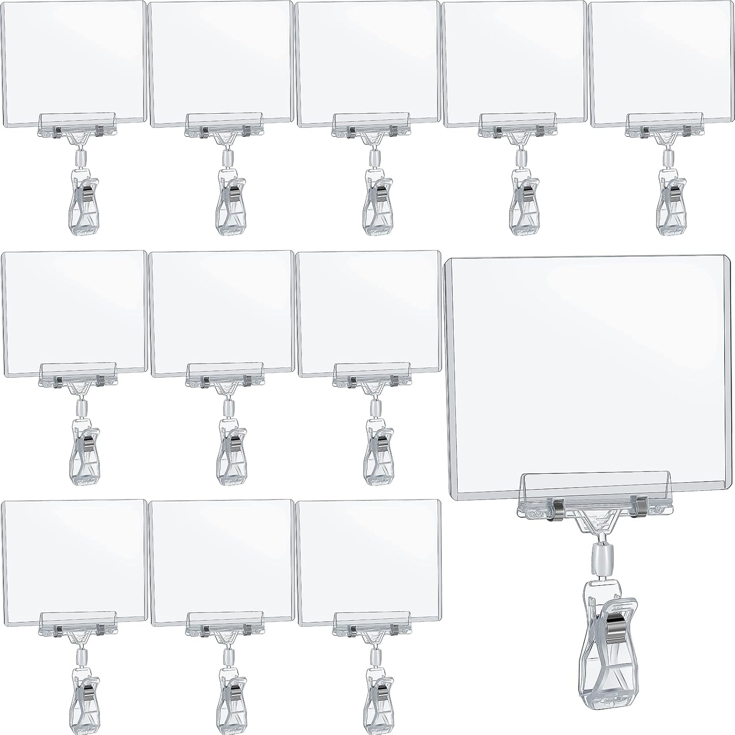 Epakh 20 Pieces Sign Clips Rotating Price Tag Clip Swivel Sign Holder for Handrails or Tubes with 20 Pieces Hard Card Sleeves PVC Card Protector for Shelves Store Supermarket(Thumb Clip Style)