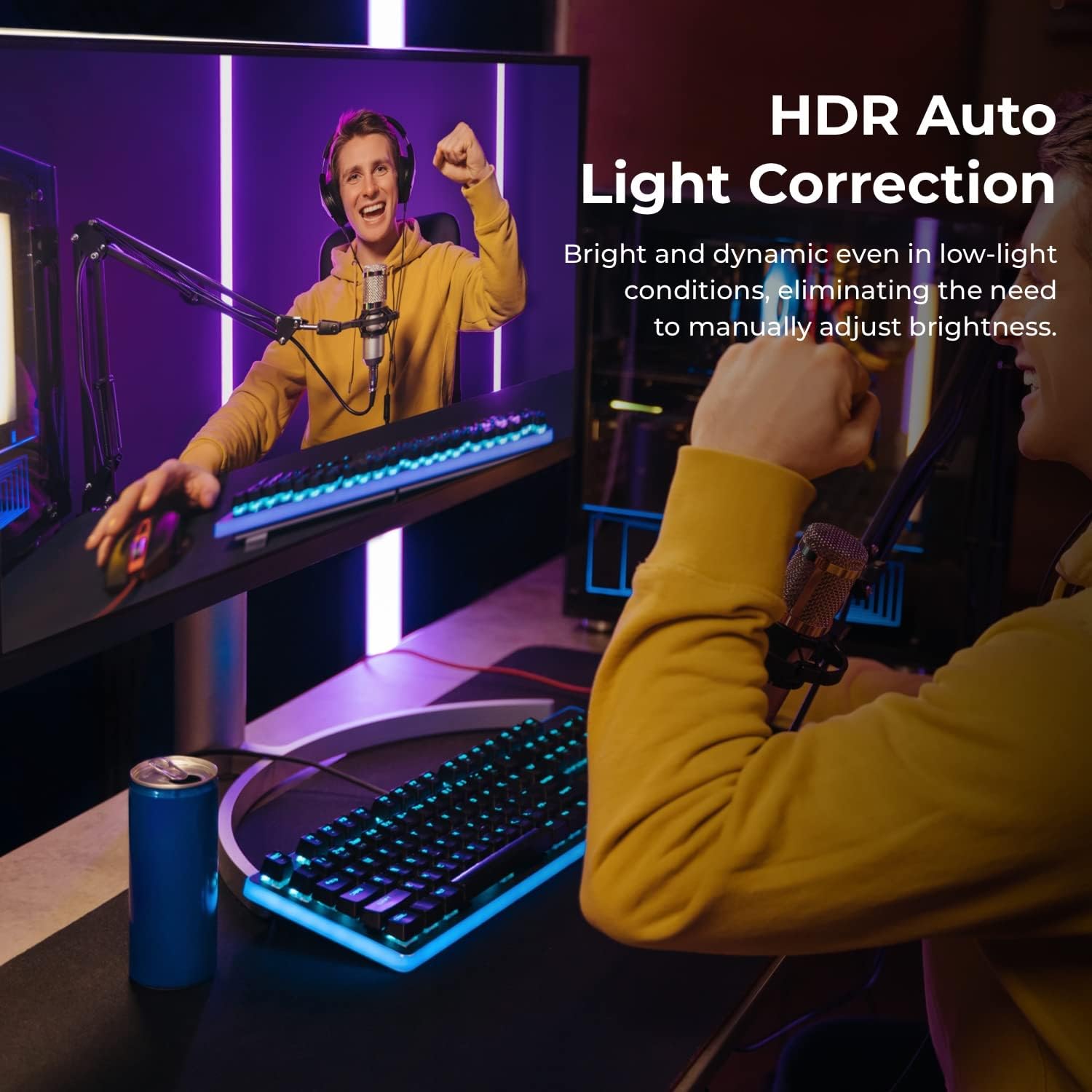 - 【𝗛𝗗 𝟰𝗞 𝗮𝗻𝗱 𝗛𝗗𝗥 𝗔𝘂𝘁𝗼 𝗟𝗼𝘄 𝗟𝗶𝗴𝗵𝘁 𝗖𝗼𝗿𝗿𝗲𝗰𝘁𝗶𝗼𝗻】The 4K webcam with Sony 1/2.8'' sensor has more pixels than 2K/1080P, 60FPS to record your life smoothly and the HDR automatic light correction function makes every detail come to life.