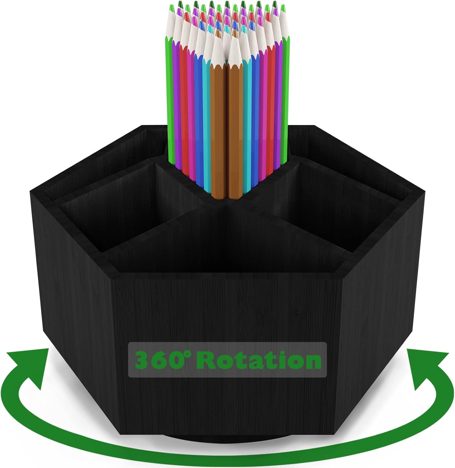 - 【MULTIFUNCTIONAL PURPOSE】The spinning organizer is designed to keep your stuff well organized, 7 sections, 1 big triangle section in middle will be perfect for your pens, crayons, scissors, paint brushes, scissors, staplers stationery, cutlery and more. The elegant design of our desktop storage organizer makes it perfect to use for classroom, living room, office supplies