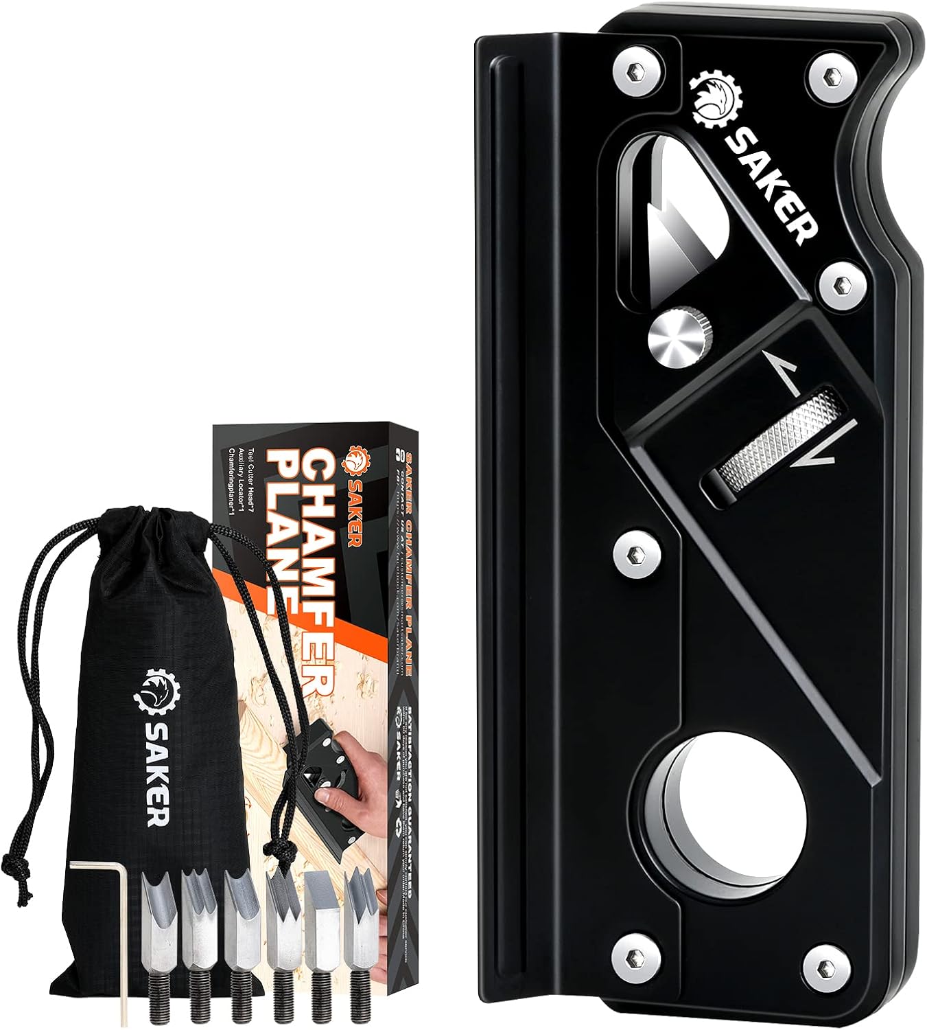 Saker Chamfer Plane-Woodworking Edge Corner Flattening Tool with Auxiliary Locator,Hand Chamfering Planer Suitable for Quick Edge Trimming of Wood (Combination upgrade-6 Cutter Heads, Black)