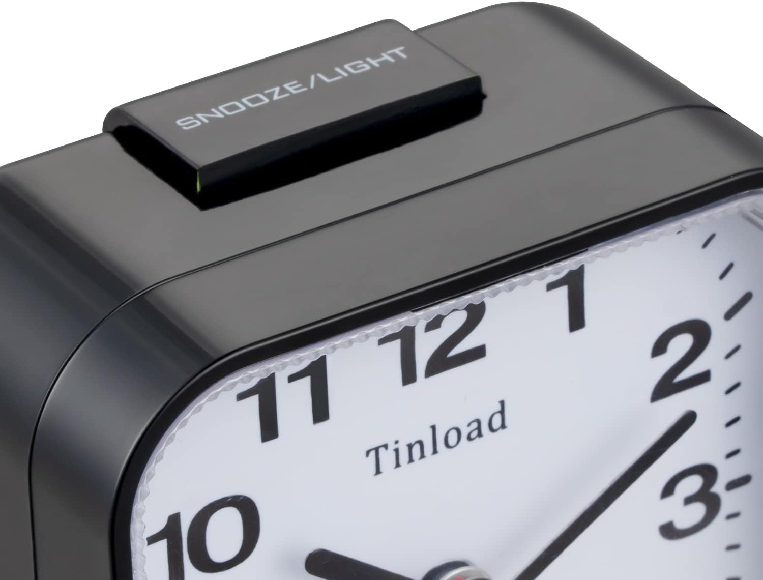 Small Battery Analog Alarm Clock Silent Non Ticking, Ascending Beep Sounds, Snooze,Light Functions (Black-B)